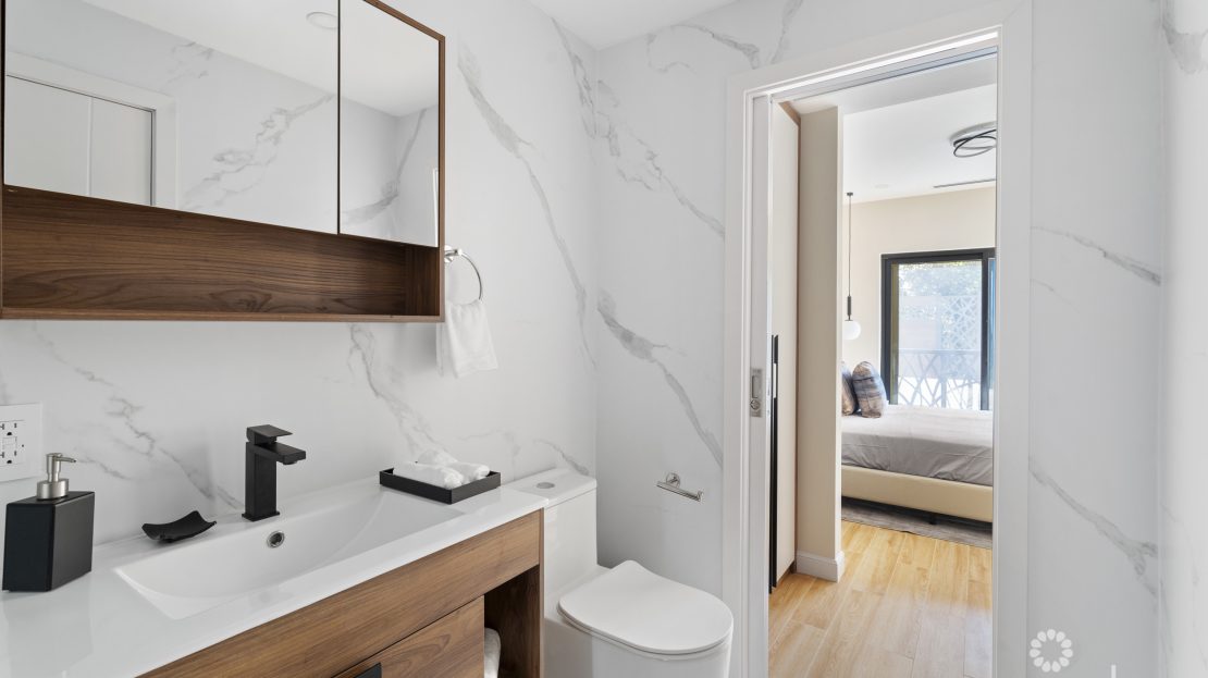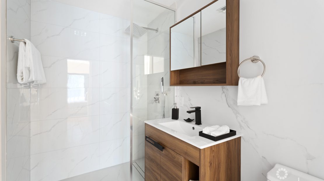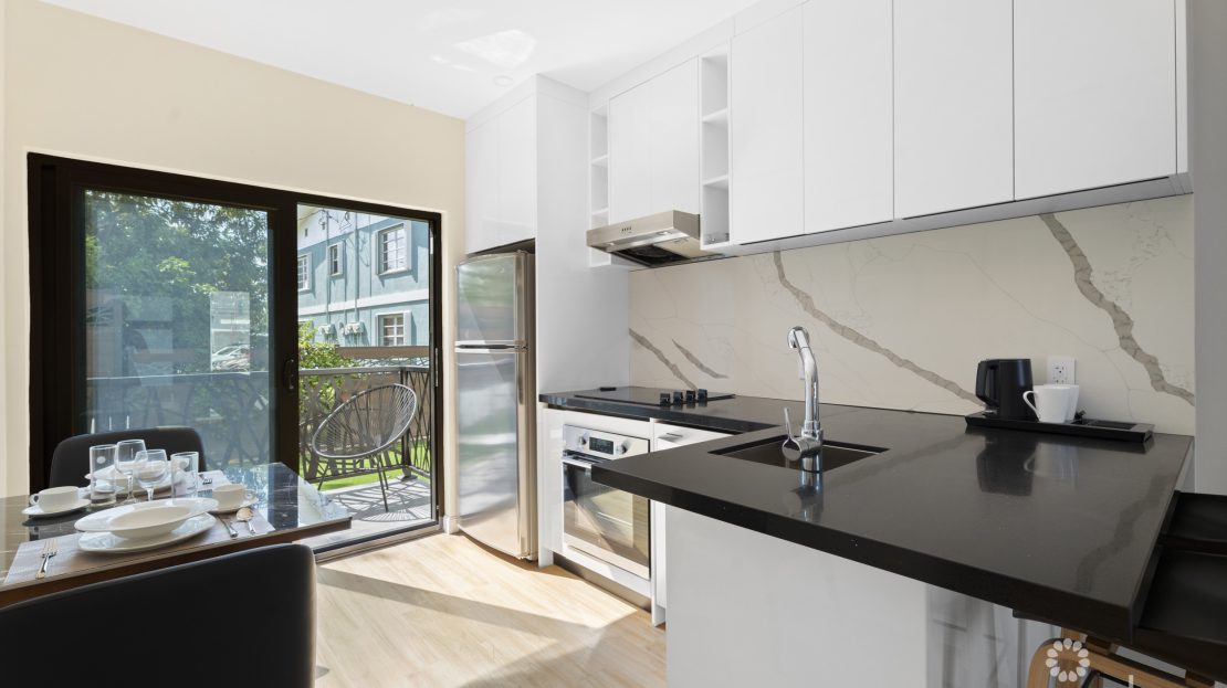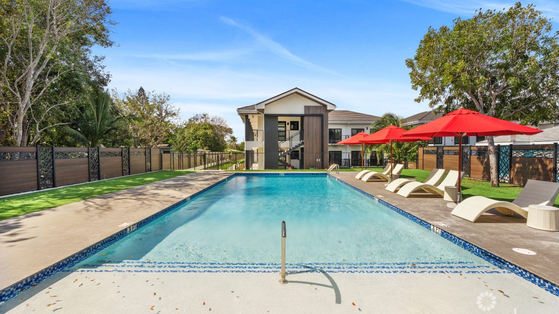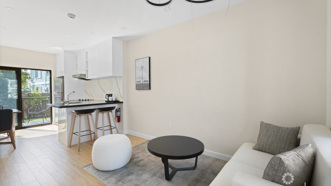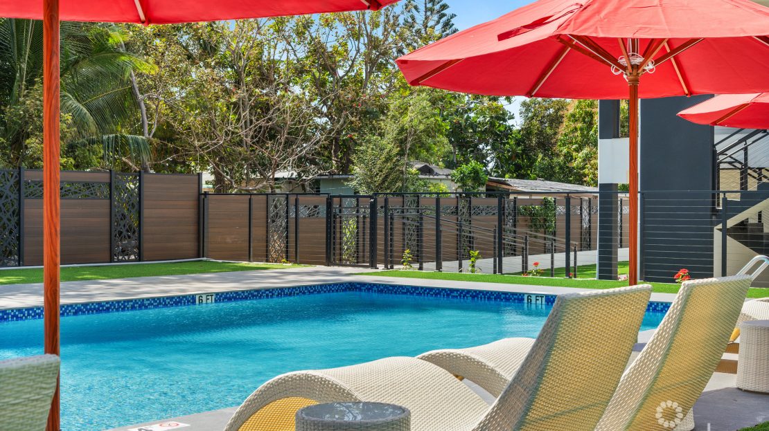 Unit I3 has two private double patios off the living area and bedroom. It has been finished to the highest standards with modern elegant design features. The unit has 9ft ceilings, hurricane-rated impact windows and premium details like magnetic door latches, stylish lighting fixtures, and high-end appliances.