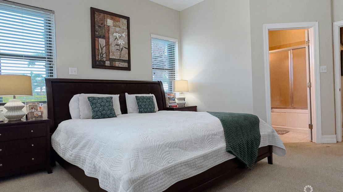 Step inside to discover a thoughtfully designed layout featuring two bedrooms, each with its own ensuite bathroom for privacy and convenience. Plantation shutters, granite countertops, and stainless steel appliances add warmth and sophistication, while the open-plan living areas flow seamlessly onto a screened patio—perfect for quiet mornings or relaxed evenings with friends.