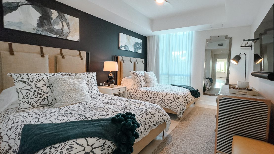 The master suite is a serene retreat, complete with a private terrace, a generous walk-in closet, and a luxurious en-suite bathroom. Two additional bedrooms, each with their own en-suite bathrooms offering comfort and true relaxation. Every detail of this unit has been curated to embody timeless sophistication.