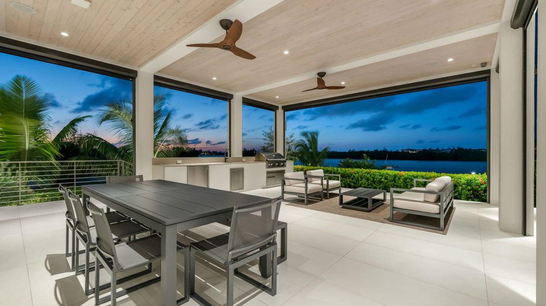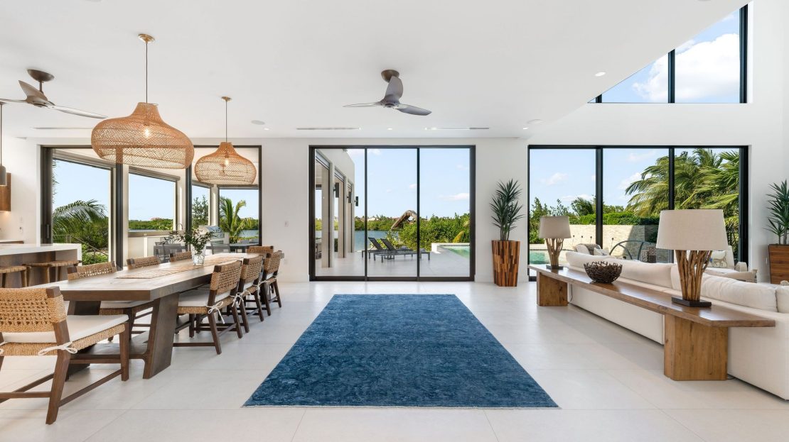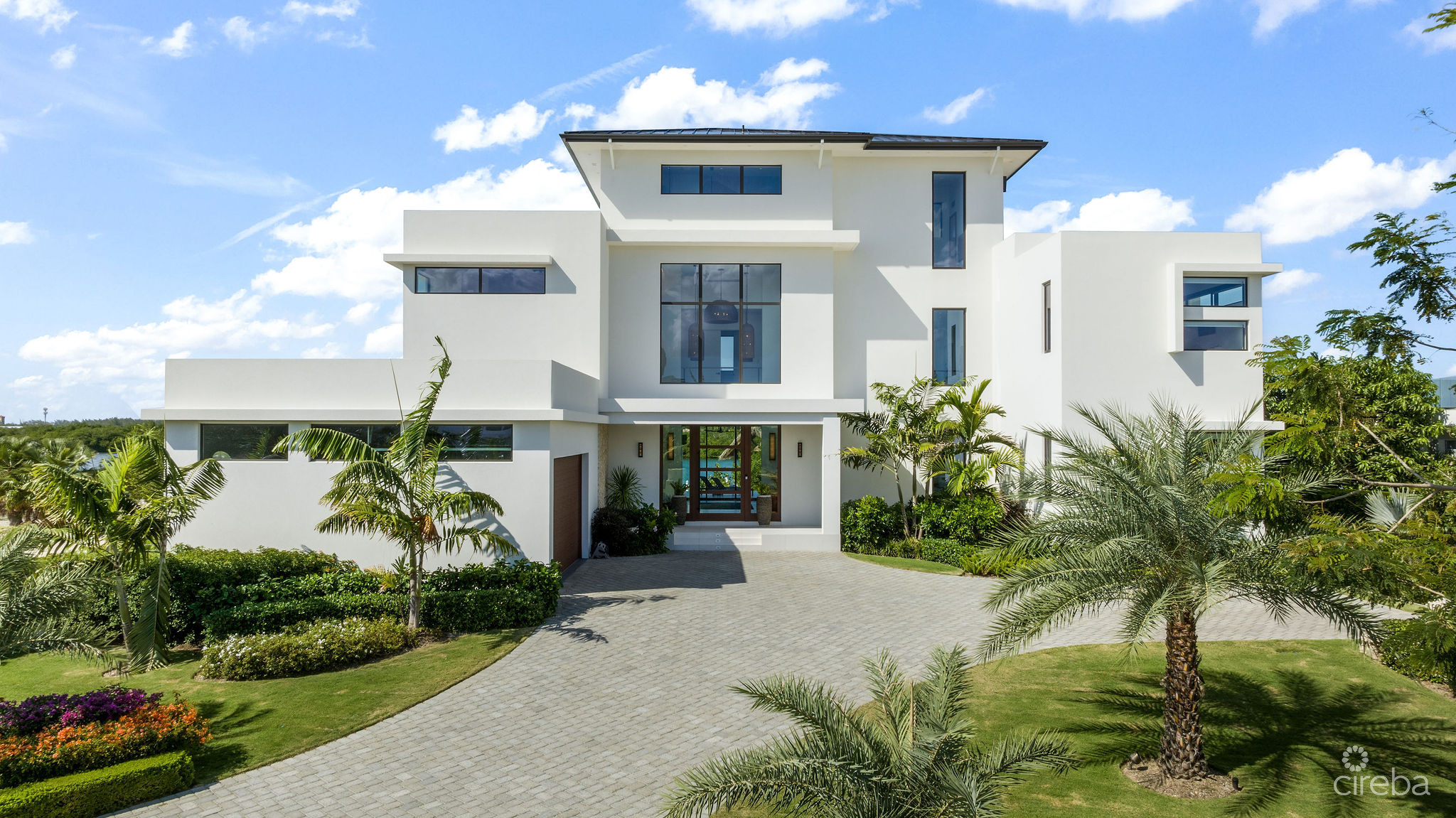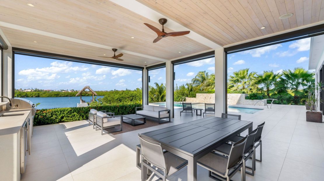 Inside, the residence offers six en-suite bedrooms, expansive living spaces, and a dramatic 30-foot foyer that leads to an open-plan living area and a chef’s kitchen complete with a butler’s pantry. Designed with everyday family life and entertaining in mind, the home seamlessly flows outdoors to covered dining and lounge areas, built-in BBQs, and retractable patio screens. A private expansive U-shaped dock (70ft + 40ft) provides easy access to the North Sound and nearby waterfront dining.