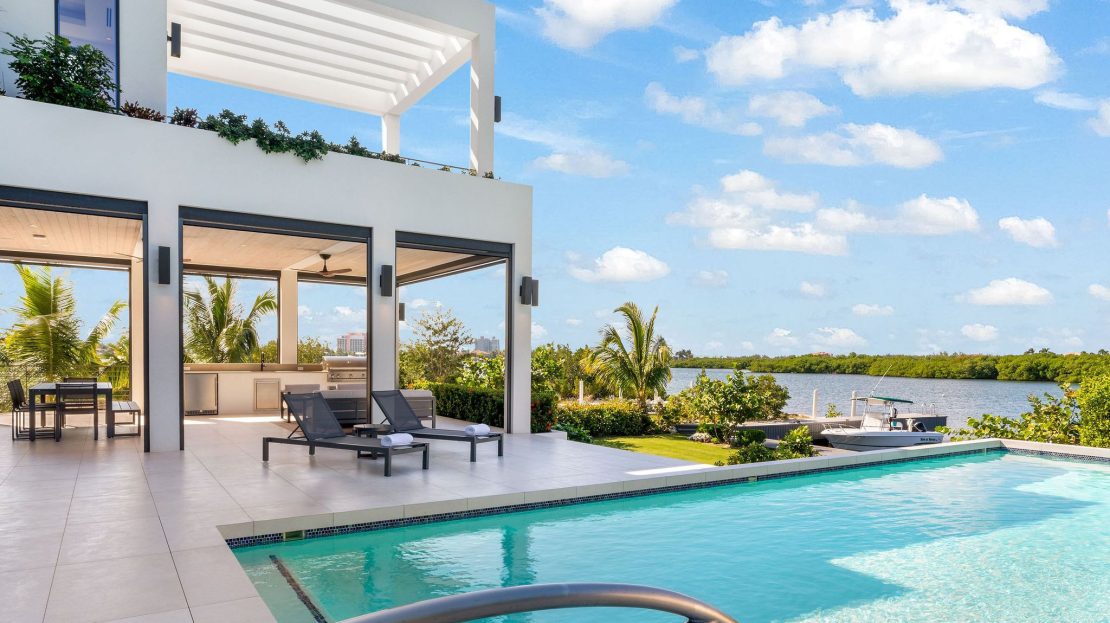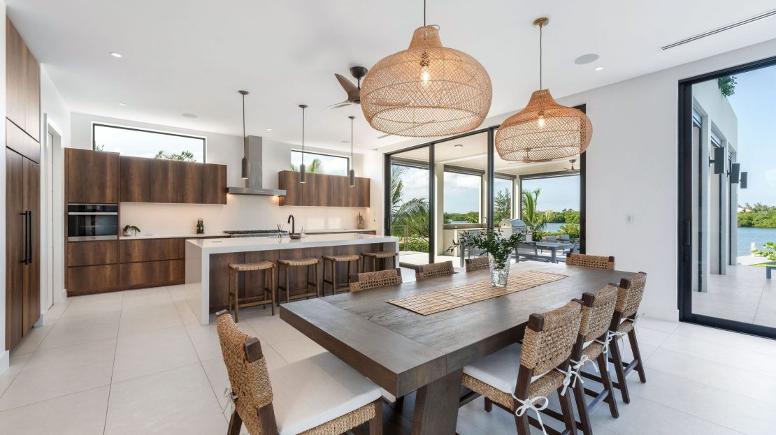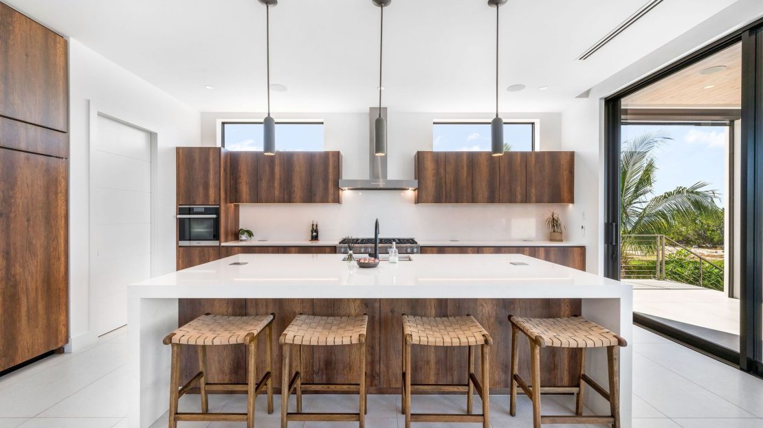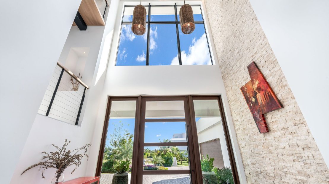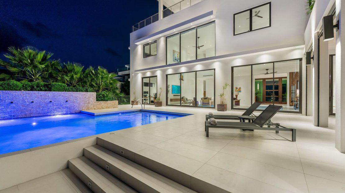 Inside, the residence offers six en-suite bedrooms, expansive living spaces, and a dramatic 30-foot foyer that leads to an open-plan living area and a chef’s kitchen complete with a butler’s pantry. Designed with everyday family life and entertaining in mind, the home seamlessly flows outdoors to covered dining and lounge areas, built-in BBQs, and retractable patio screens. A private expansive U-shaped dock (70ft + 40ft) provides easy access to the North Sound and nearby waterfront dining.