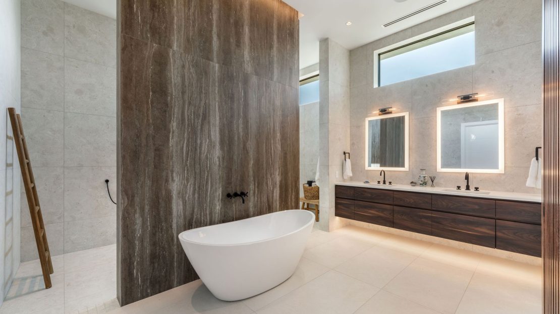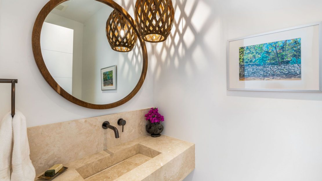 No detail has been overlooked: blackout Lutron blinds, a smart home system, double garage, elevator-ready shaft, and eco-conscious touches including solar panels, a cistern, and gas fittings. The home comes fully furnished in a relaxed, luxe-bohemian style refined yet welcoming.