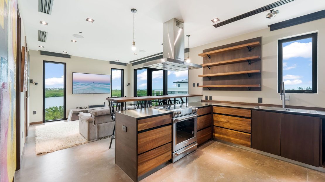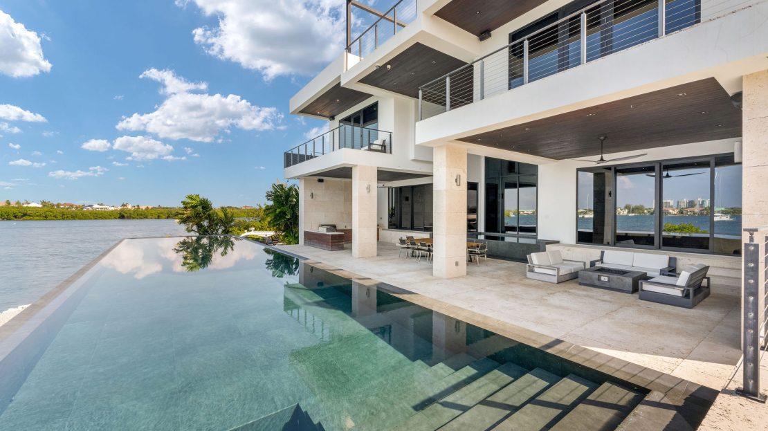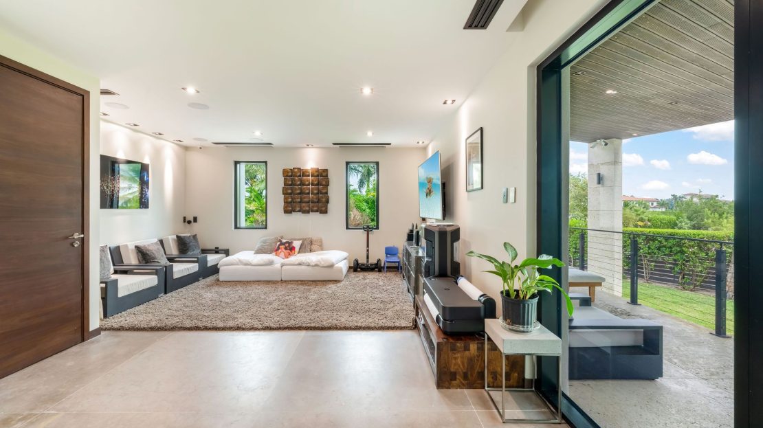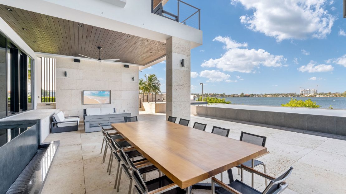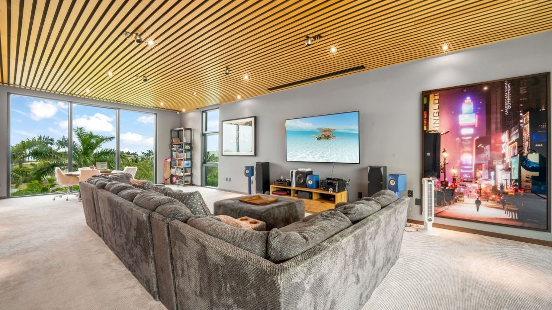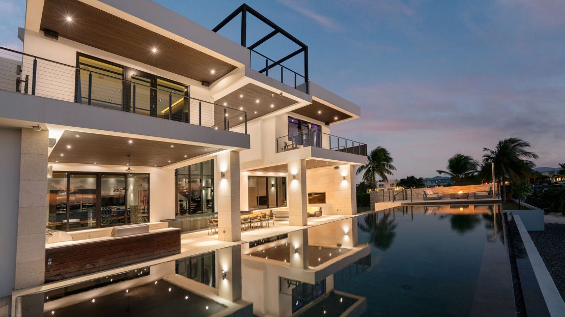 Upon entering, you’re greeted by a grand foyer adorned with soaring ceilings and opulent finishes, setting the tone for the lavishness that awaits within. The open-concept floor plan seamlessly integrates the living, dining, and kitchen areas, creating a space ideal for both intimate gatherings and grand entertaining. Oversized windows and sliding glass doors flood the interiors with natural light while offering seamless access to the expansive outdoor living spaces, where a private pool, lush landscaping, and alfresco dining areas beckon for relaxation and enjoyment of the island’s tropical climate.