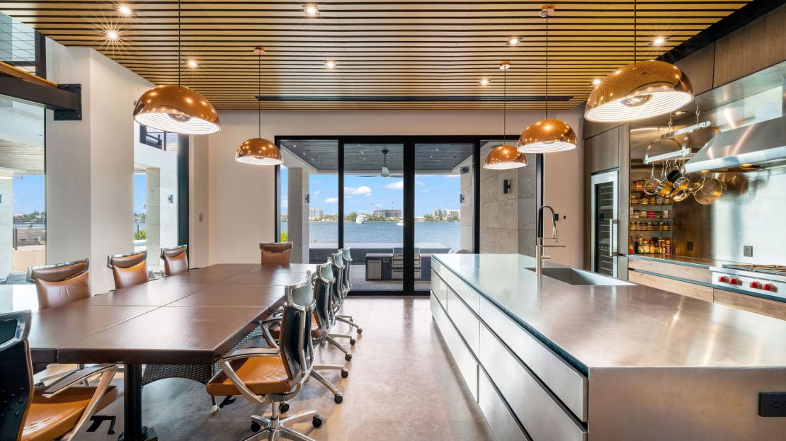 The gourmet kitchen is a culinary enthusiast’s dream, outfitted with state-of-the-art appliances, custom cabinetry, and an oversized island with bar seating. Adjacent to the kitchen, a formal dining area provides an elegant setting for hosting dinner parties and special occasions.