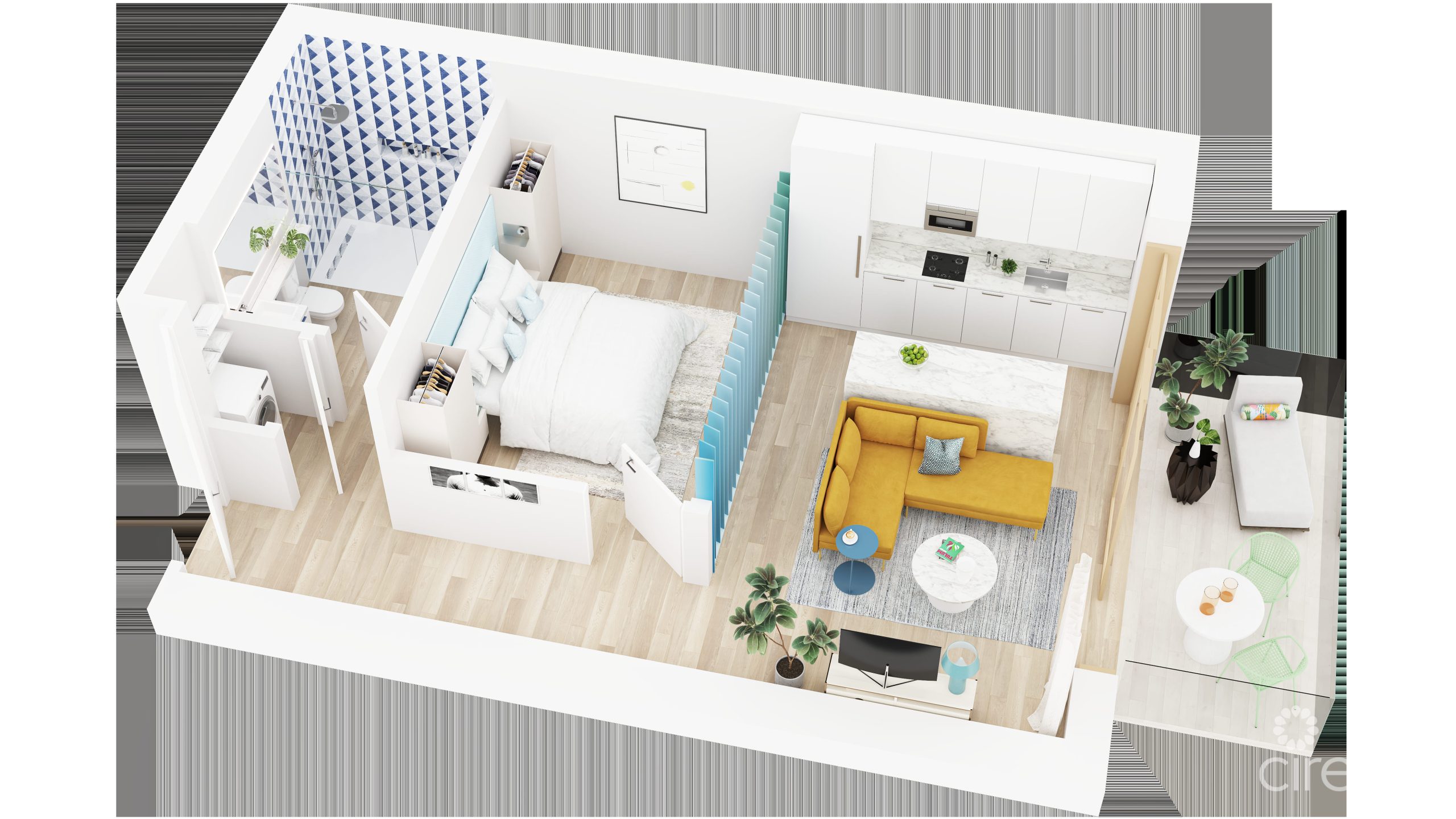 The open-concept layout is bright and inviting, with seamless flow between the living, dining, and kitchen areas. Clean lines, quality finishes, and smart design maximize both space and functionality, while the private balcony extends your living area outdoors, perfect for morning coffee or unwinding at the end of the day. The bedroom provides a peaceful retreat with ample storage, and the well-appointed bathroom reflects the same modern aesthetic found throughout the home.