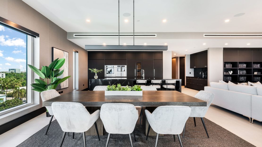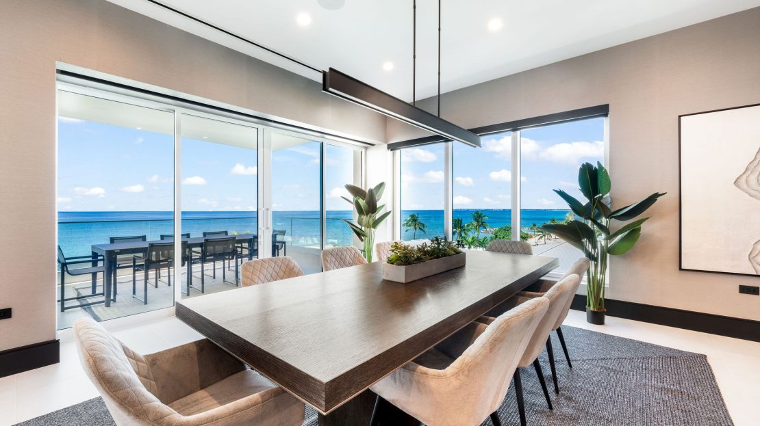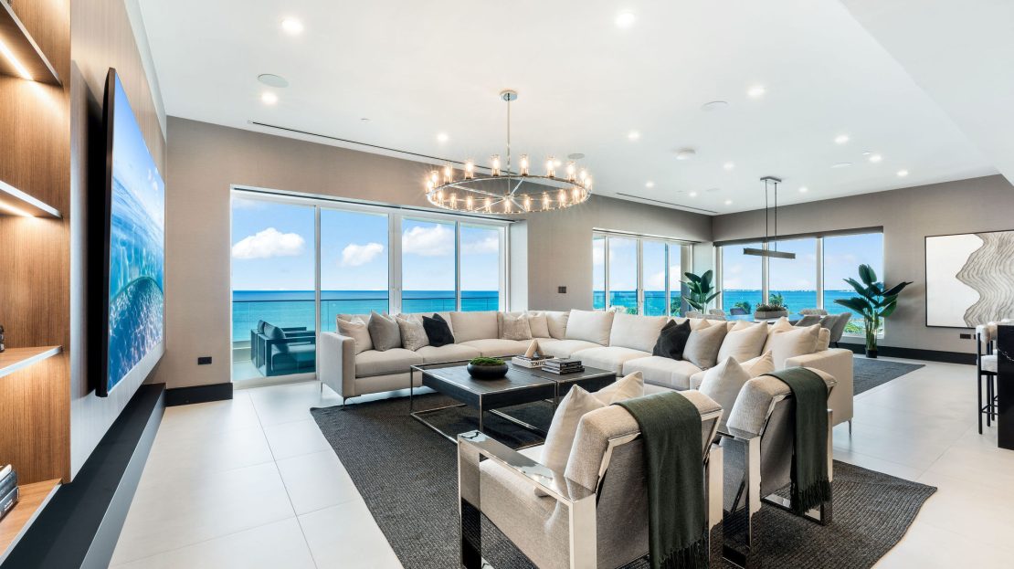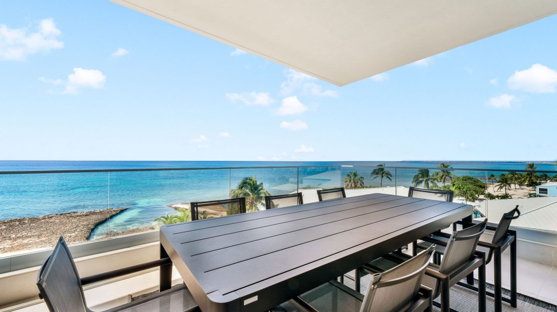 Welcome to Residence 4 at Aqua, a rare full-floor unit with incredible space, privacy and views in the heart of Seven Mile Beach. This fully furnished 4-bedroom, 4.5 bathroom residence sits on the entire 4th floor and offers uninterrupted 360-degree views, from stunning sunsets over the Caribbean to tranquil sunrises on the island side. A massive 50-foot beachfront terrace gives you the perfect spot for outdoor dining, lounging or just soaking in the sunset. Inside, the open-plan layout is bright and airy, thanks to floor-to-ceiling windows and 10 ft ceilings throughout.