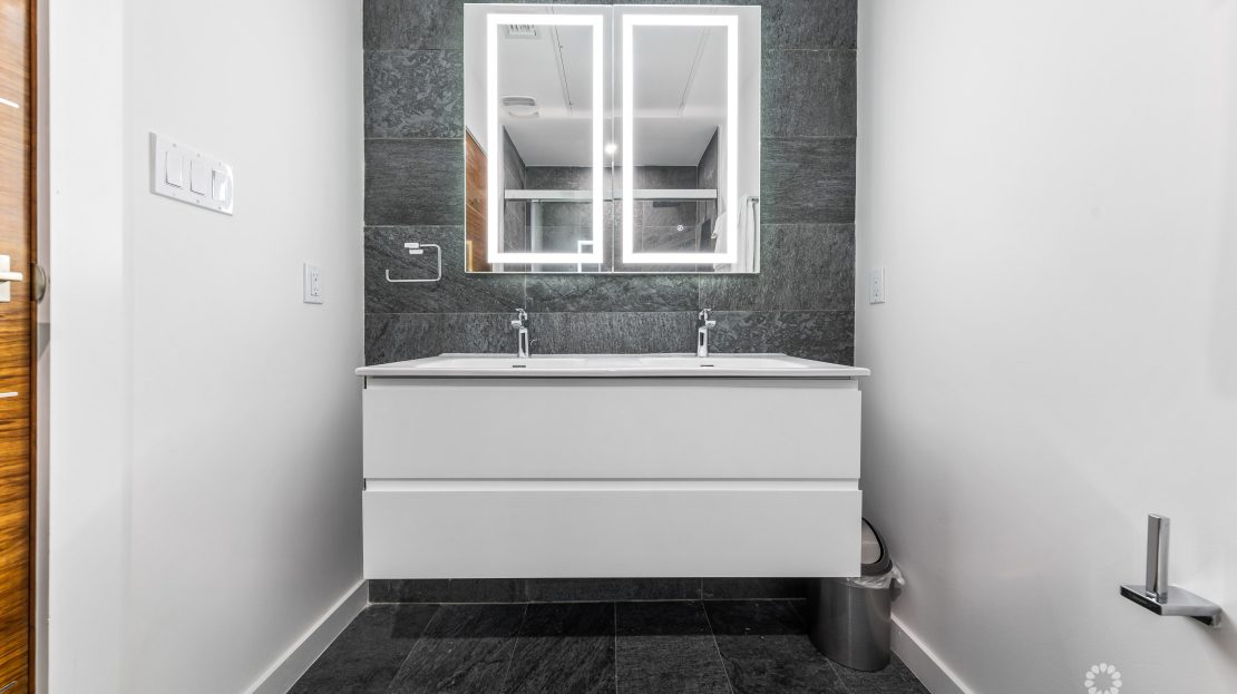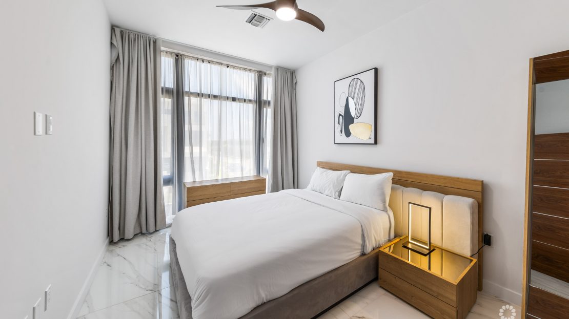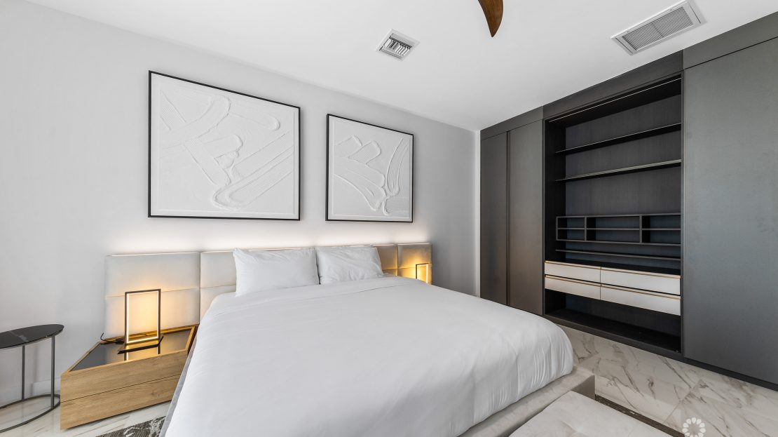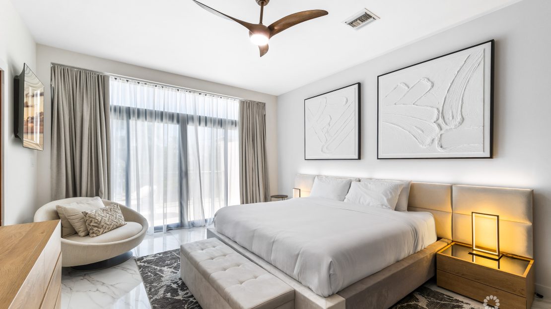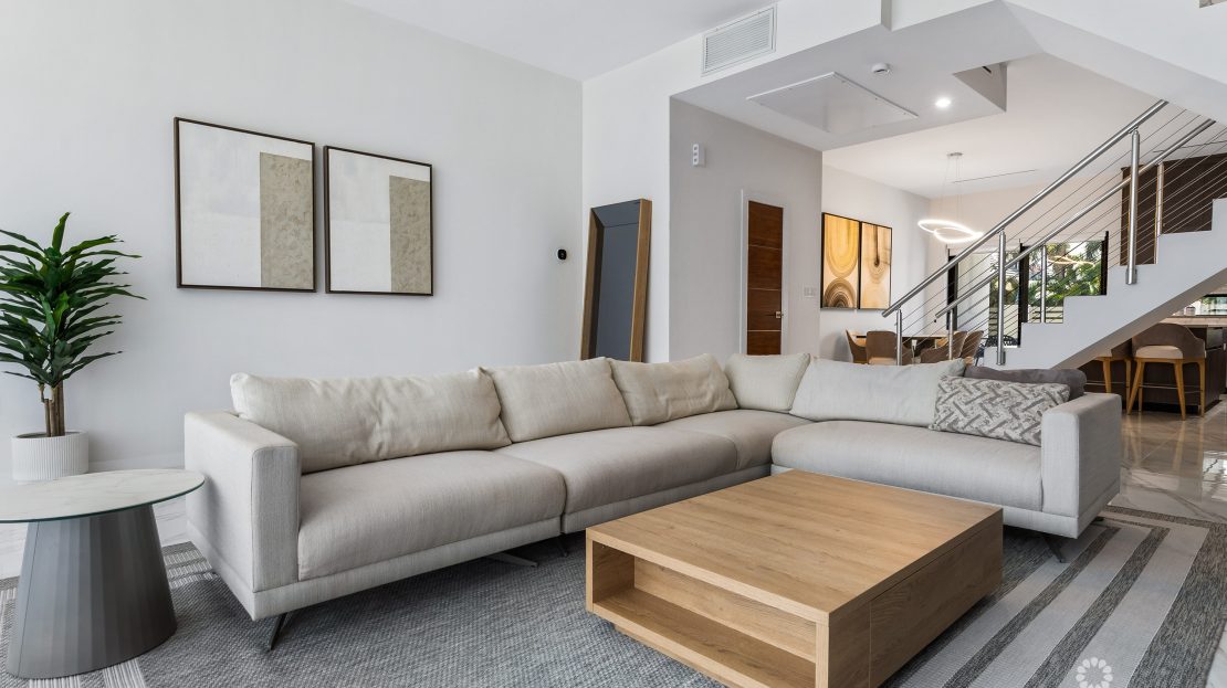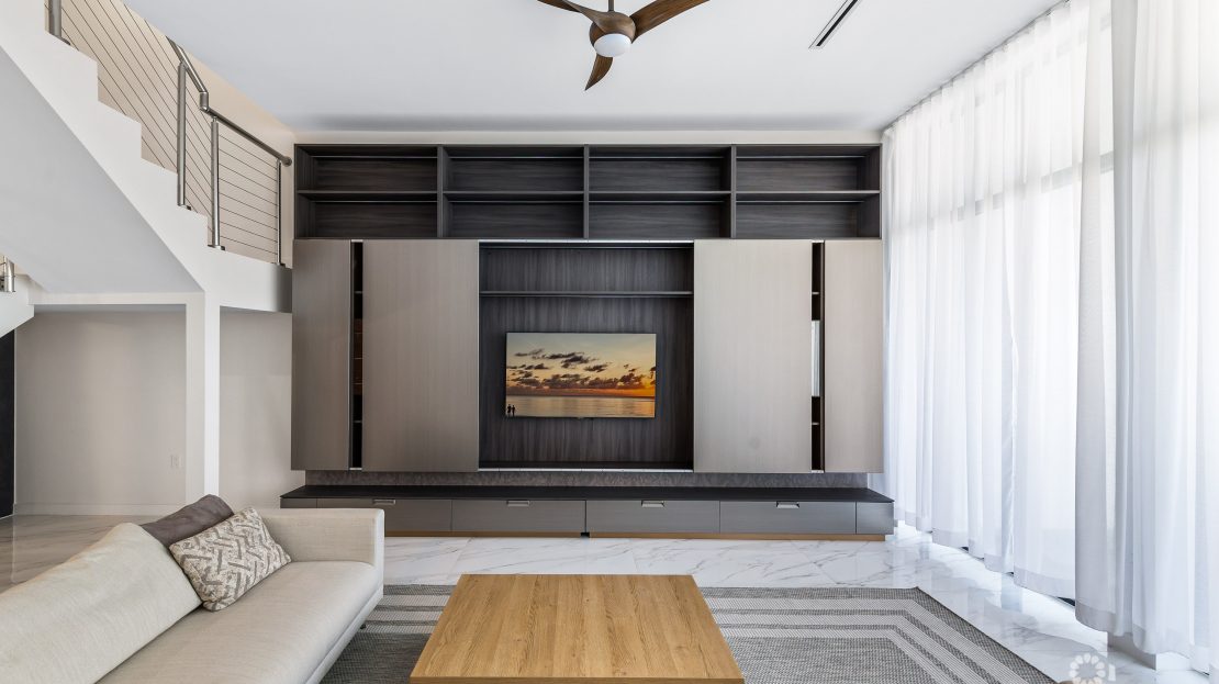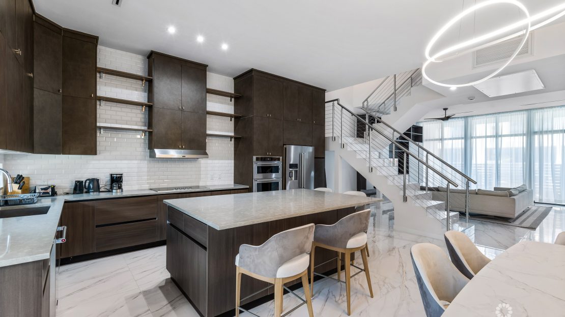 This residence comes with a $50,000 upgraded furniture package, a fully upgraded modern kitchen, a custom-built living room wall unit, custom window treatments, and two custom closets, making it move-in ready with thoughtful details throughout.