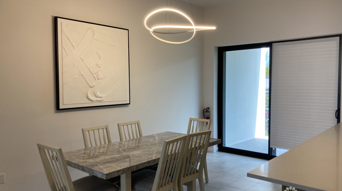 State-of-the-art smart home technology includes Cat 6 wiring, a NEST thermostat-controlled Lennox HVAC system, and a Ring security system with video entry. Expansive impact-resistant Induplan windows from Spain offer energy efficiency and hurricane resilience while eliminating the need for shutters. 7’ and 8’ solid-core EuroDoor interior doors provide a sleek and contemporary aesthetic.