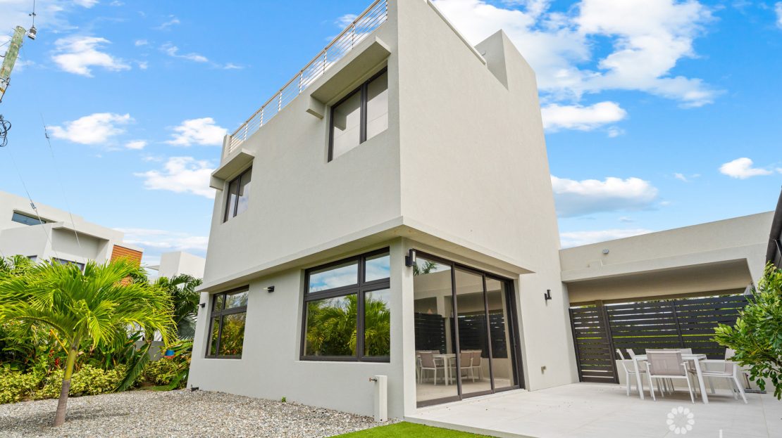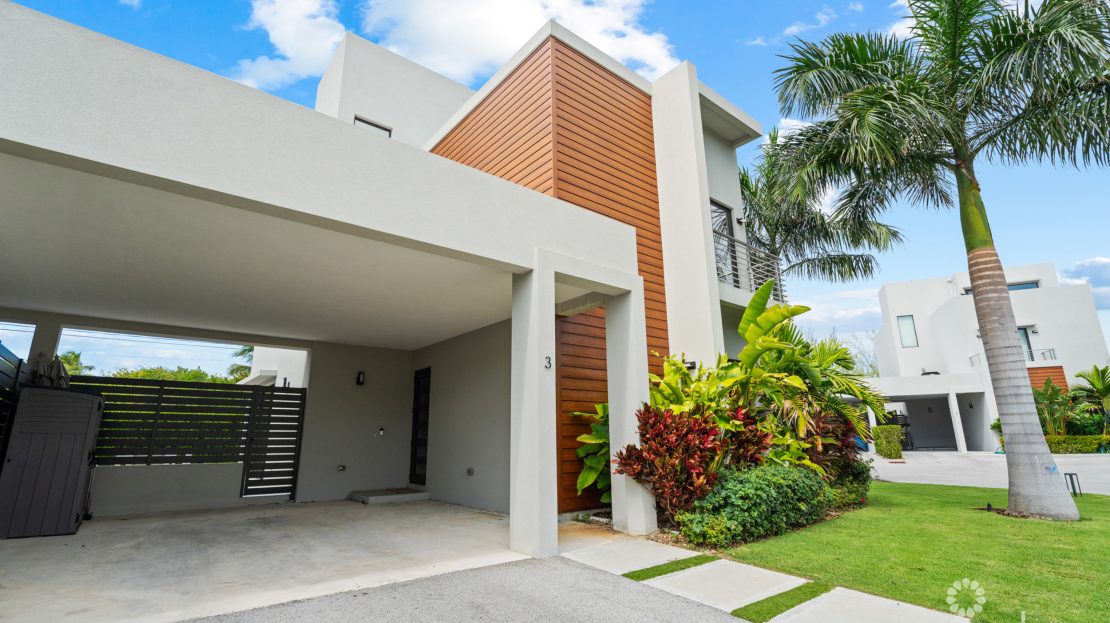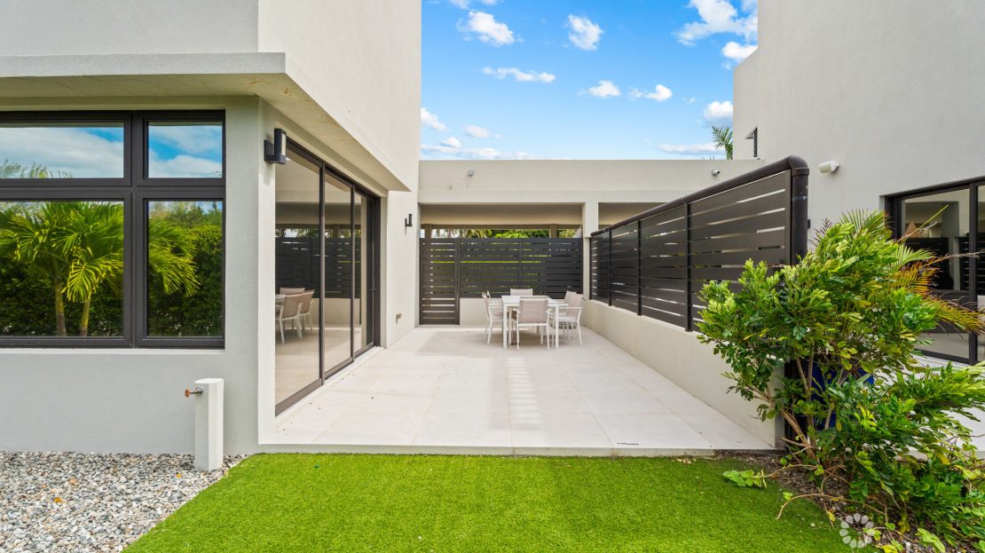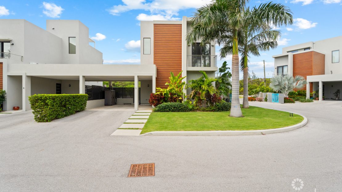 This fully furnished, newly built four-bedroom home sits within the gated Blue Palms community, made up of just eight residences. Designed to feel like a standalone property, it offers around 3,300 sq ft of thoughtfully planned living space across three levels. The open-plan main floor connects the kitchen, dining, and living areas, opening out to a large backyard — ideal for children, pets, or relaxed outdoor living. A bedroom on this level also works well as a home office, den, or playroom. The home has been well cared for and comes with tinted windows, fitted blinds, and smart features throughout, including automatic blinds, a two-zone air-conditioning system, Ring security, and mesh Wi-Fi on all floors. Solar panel capability is already in place. Outdoor living is a highlight, with both a private backyard and a rooftop terrace offering lounge areas, an electric pergola, and ocean views. Residents also enjoy access to a shared pool and BBQ area. Additional conveniences include a covered driveway with storage and low maintenance fees. Built in 2023, this move-in ready home is close to public beach access, dive shops, local restaurants, and less than a 15-minute drive to Camana Bay.