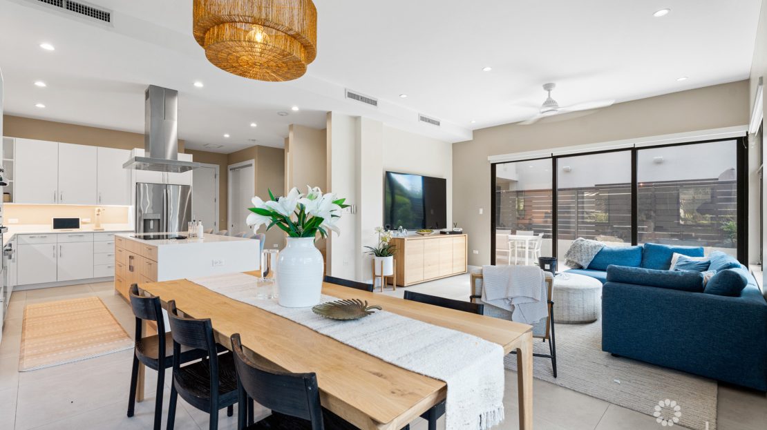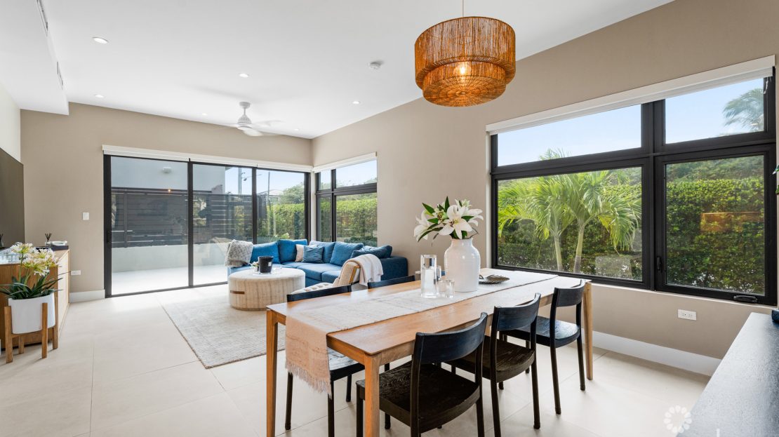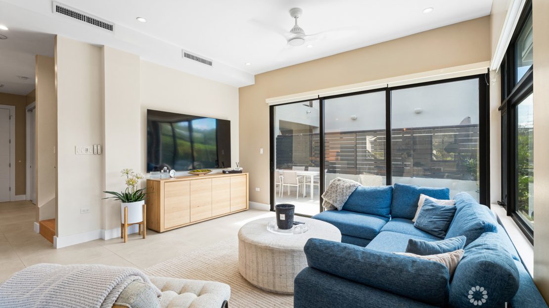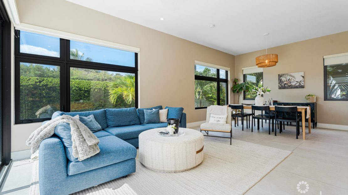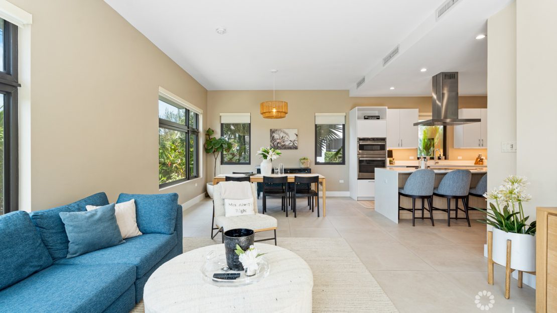 This fully furnished, newly built four-bedroom home sits within the gated Blue Palms community, made up of just eight residences. Designed to feel like a standalone property, it offers around 3,300 sq ft of thoughtfully planned living space across three levels. The open-plan main floor connects the kitchen, dining, and living areas, opening out to a large backyard — ideal for children, pets, or relaxed outdoor living. A bedroom on this level also works well as a home office, den, or playroom. The home has been well cared for and comes with tinted windows, fitted blinds, and smart features throughout, including automatic blinds, a two-zone air-conditioning system, Ring security, and mesh Wi-Fi on all floors. Solar panel capability is already in place. Outdoor living is a highlight, with both a private backyard and a rooftop terrace offering lounge areas, an electric pergola, and ocean views. Residents also enjoy access to a shared pool and BBQ area. Additional conveniences include a covered driveway with storage and low maintenance fees. Built in 2023, this move-in ready home is close to public beach access, dive shops, local restaurants, and less than a 15-minute drive to Camana Bay.