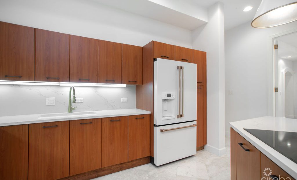 Located in the world-renowned Seven Mile Beach Corridor in the Village of Britannia, a secluded, prestigious community in the heart of Grand Cayman. This two-story Townhome, completely renovated; never lived in, is one of six charming Townhomes nestled in the exclusive King’s Court offering privacy and tranquility. The Townhome is on freehold land. Sited toward beautiful sunset views with surrounding spacious landscaping, lush tropical flowering bushes, shrubs, and palm trees all meticulously community maintained. There is an attached oversized two-car garage with extra storage. Blended into the Townhome’s architecture is a golf cart sized shed with an electric charging station.