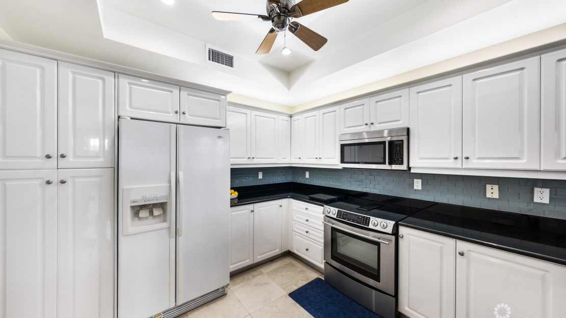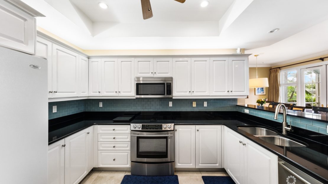 The thoughtfully designed 1,848-square-foot residence boasts two generously proportioned bedrooms and two immaculately appointed bathrooms. The primary bedroom serves as a tranquil retreat after days spent exploring Cayman’s azure waters. Natural light cascades through the residence, illuminating the high-end culinary workspace featuring prestigious JennAir and Bosch appliances.