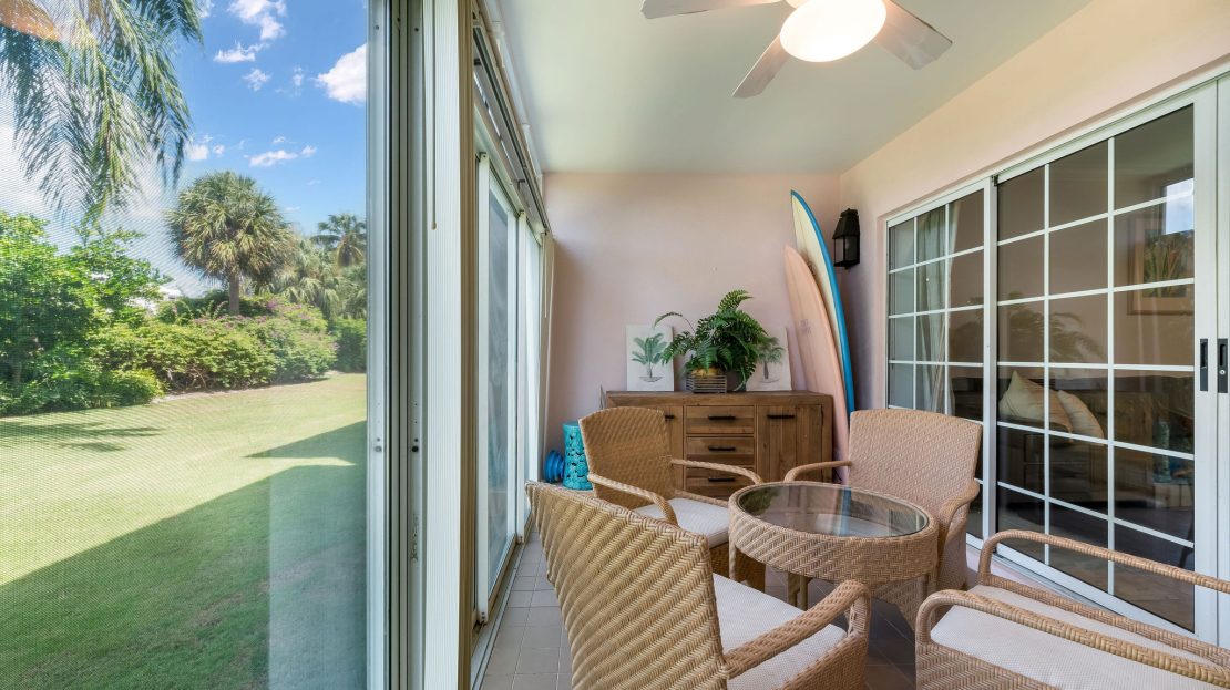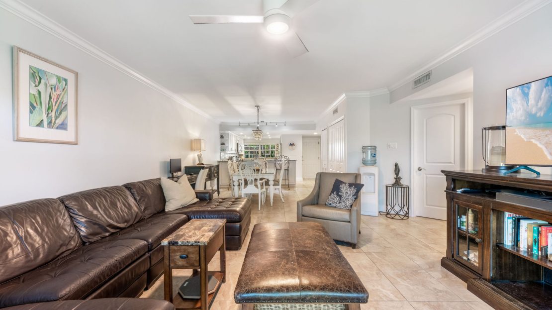 Set on the peaceful second floor, this bright unit is surrounded by lush tropical landscaping and serene views of the former Britannia Golf Course. The open-plan living area is filled with natural light from floor-to-ceiling windows and opens onto a spacious screened terrace, perfect for relaxing with morning coffee, winding down at night, or entertaining friends year-round.