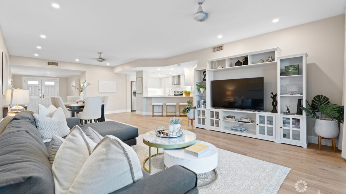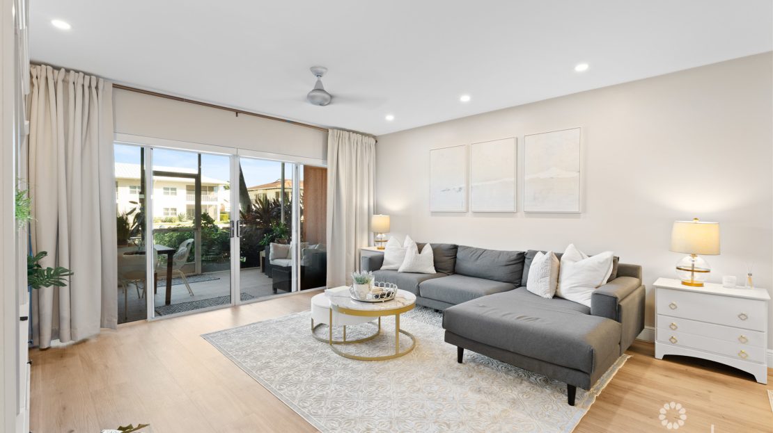 Step into this fully renovated 2-bedroom, 2-bathroom ground-floor residence at Regents Court, Britannia, offering 1,738 sq. ft. of open, inviting living space.