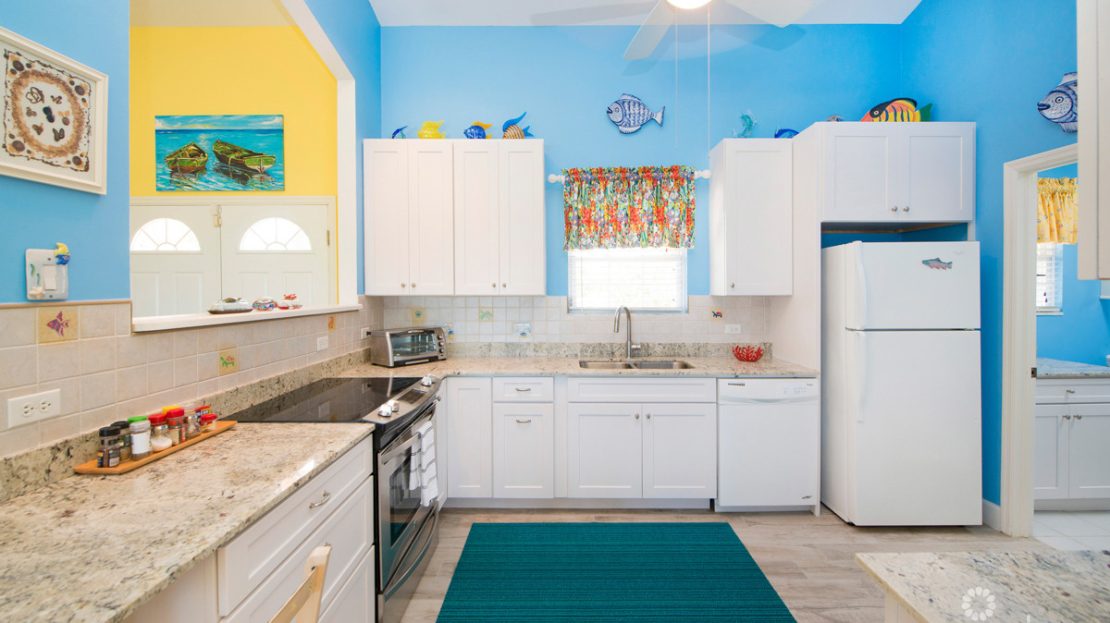 Step inside to find an interior awash in island-inspired color palette that captures the essence of Caribbean living—soft coral hues, ocean blues, and warm sunny tones create an atmosphere of island joy. The thoughtfully designed layout flows seamlessly from living spaces to the screened-in porch, where constant tropical breezes and the gentle sound of waves create your own personal sanctuary.