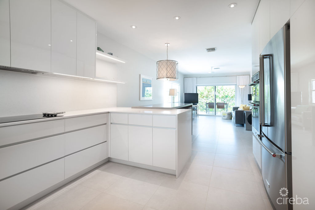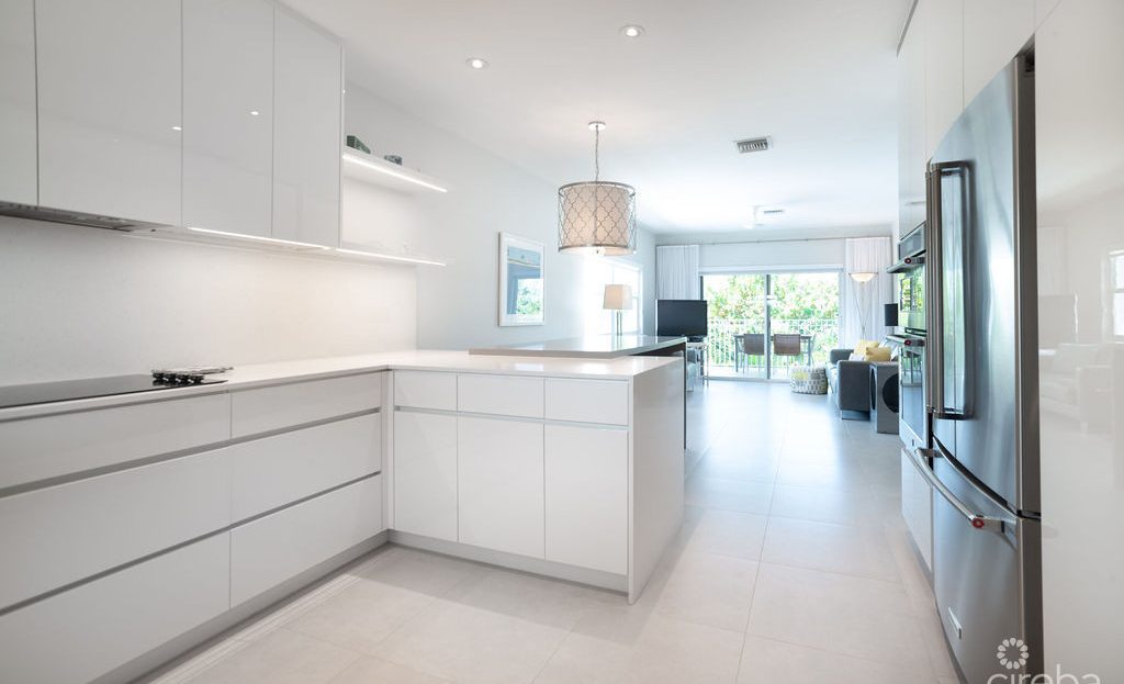 The gourmet kitchen is a culinary haven, featuring top-of-the-line appliances, sleek cabinetry, and premium finishes, inspiring culinary creations while overlooking the azure waters beyond. Share intimate meals with loved ones in the adjoining dining area, or step out onto the private balcony to savor al fresco dining with a backdrop of breathtaking sunsets over the Caribbean Sea.