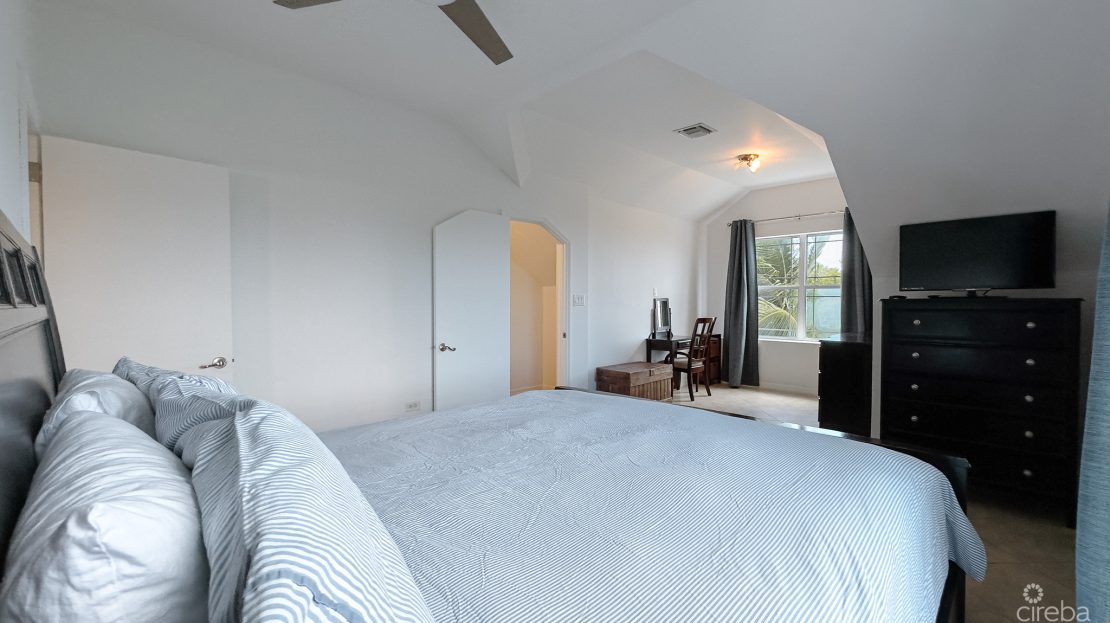 Boasting over 2,200 sq ft, this 3-bedroom, 3.5-bathroom home is beaming with natural light, offering high ceilings and uninterrupted water views from every room. Whether you’re enjoying morning coffee on your private patio or winding down in the third-floor suite overlooking Rum Point and Kaibo, each space is designed to frame the surrounding beauty of island life.