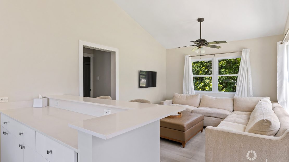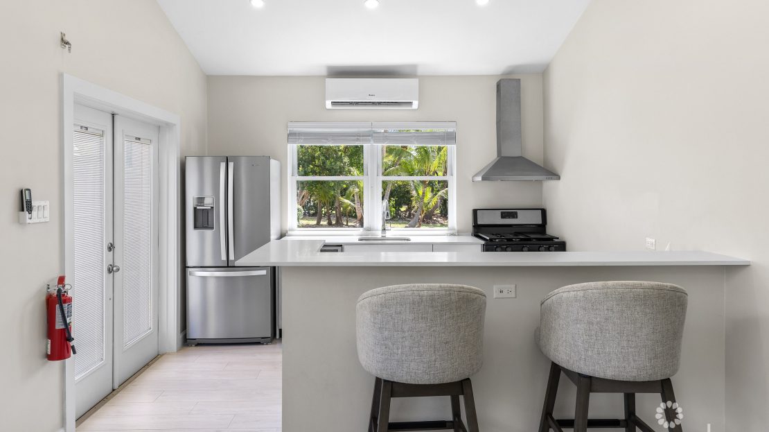#3: 1 bedroom, 1 bathroom unit with living area, fully equipped kitchen walk in closet, and laundry.