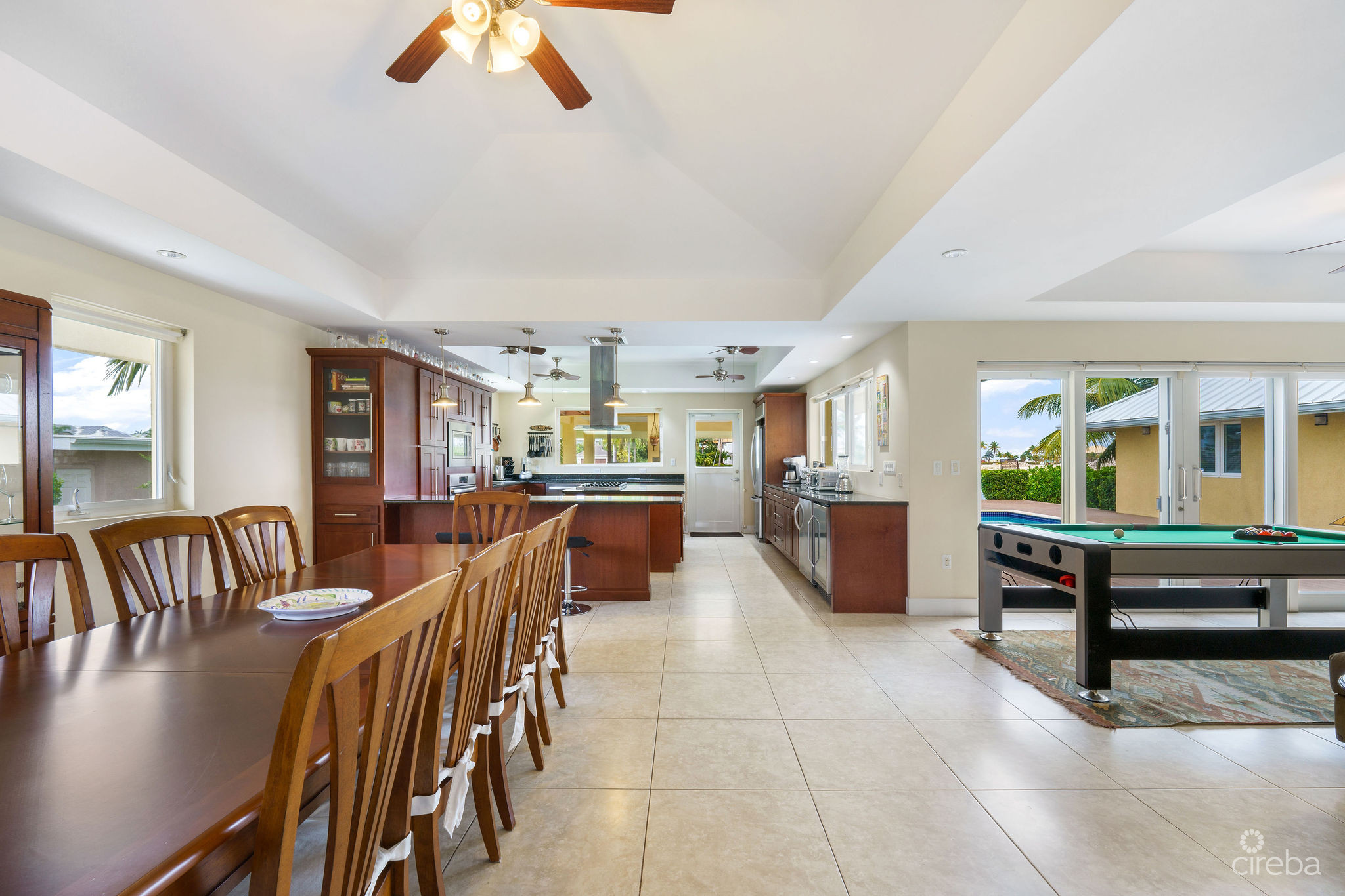 12 Crystal Drive is a stunning canal-front residence offering the perfect blend of Caribbean charm and modern elegance. It features three spacious bedrooms, three and a half bathrooms, a den, and a semi-detached one-bedroom, one-bathroom guest quarters, making it ideal for families or those who love to entertain.