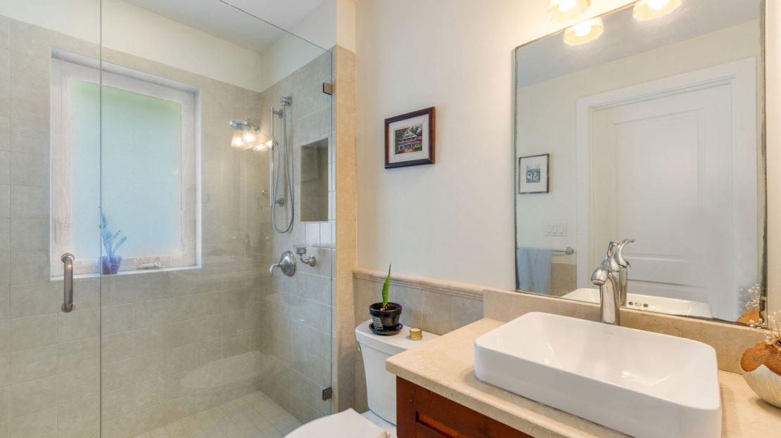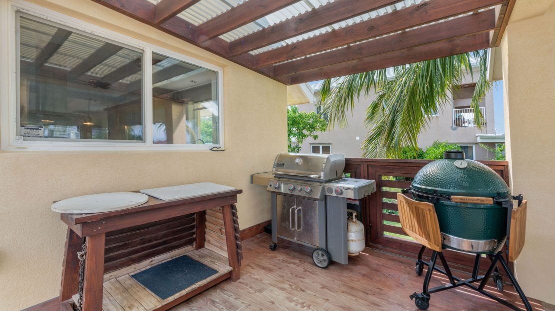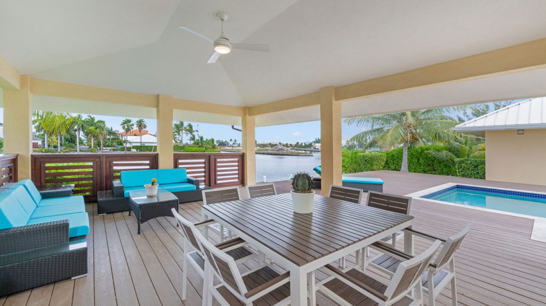 Designed for island living, this home’s outdoor space is a true highlight. A covered terrace with a comfortable lounge area invites al fresco dining and sunset cocktails, while the private pool and waterfront views provide the perfect backdrop for relaxation. Boating enthusiasts will appreciate the ~58ft private dock, offering effortless access to the North Sound.