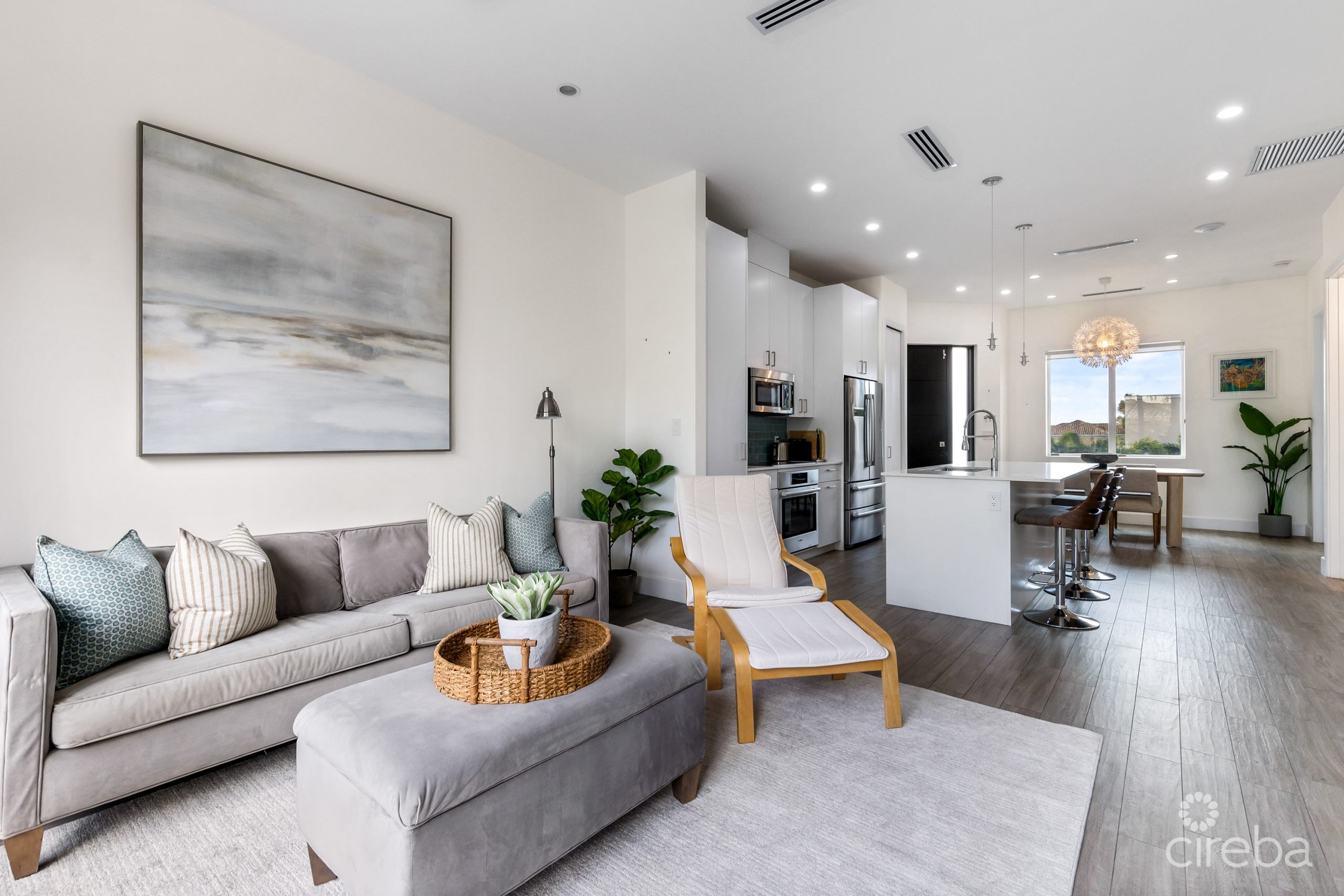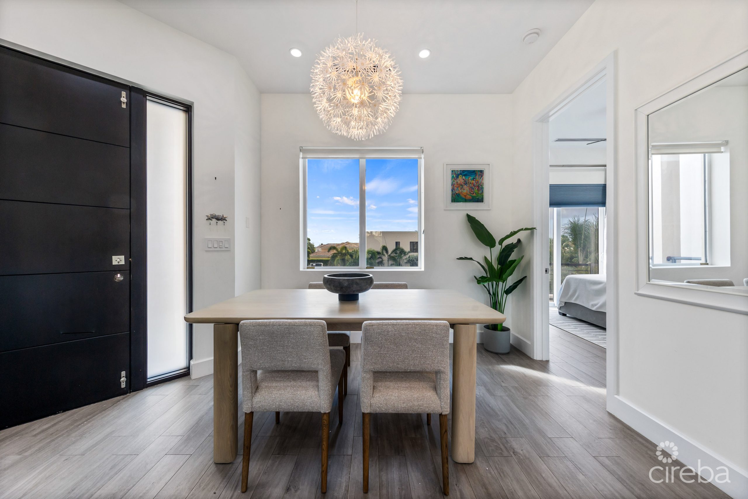 This home offers more than 900 sq. ft. of well-planned living space with an open layout and generous storage throughout. The design allows for comfortable everyday living while making good use of the space. A notable benefit for the new owner is the property’s renewable energy systems, meaning there are no CUC electricity bills. The interior includes a modern kitchen with pantry and additional storage closet, a dining area, a spacious living room, a quiet primary bedroom, and a large walk-in wardrobe. Located within the waterfront neighbourhood of Crystal Harbour beside the North Sound Golf Club, the development focuses on energy efficiency and sustainable design. The residence is presented in excellent condition. With only a limited number of one-bedroom homes in this development, the property offers a rare opportunity to own within a quiet residential setting along the Seven Mile Beach Corridor. The building features ICF construction, hurricane-rated impact windows and doors, a full solar power system, and geothermal cooling technology. Residents are close to tennis courts, swimming pools, fitness facilities, boating, and golf. The surrounding golf course paths also provide space for walking, running, and cycling.