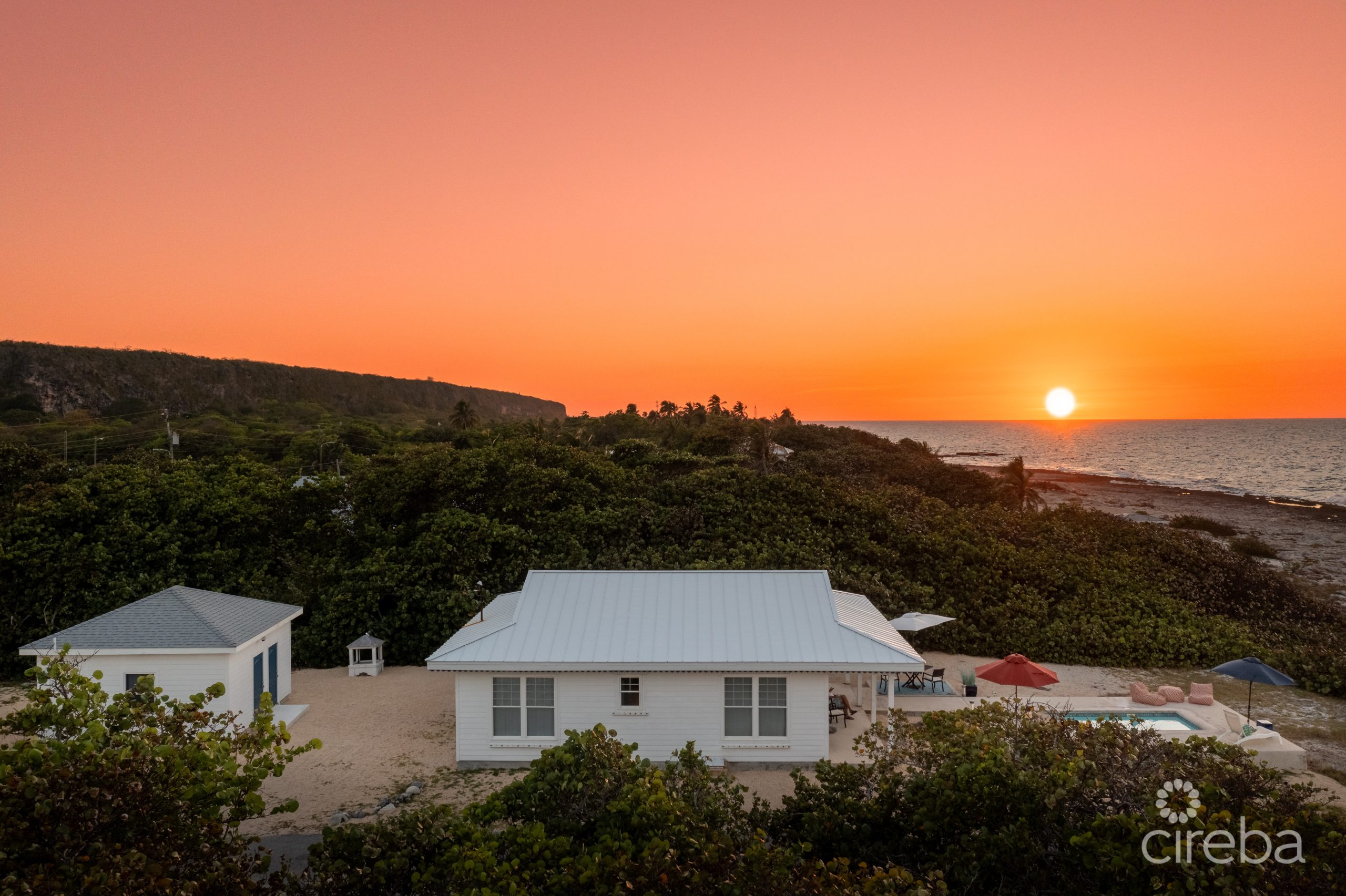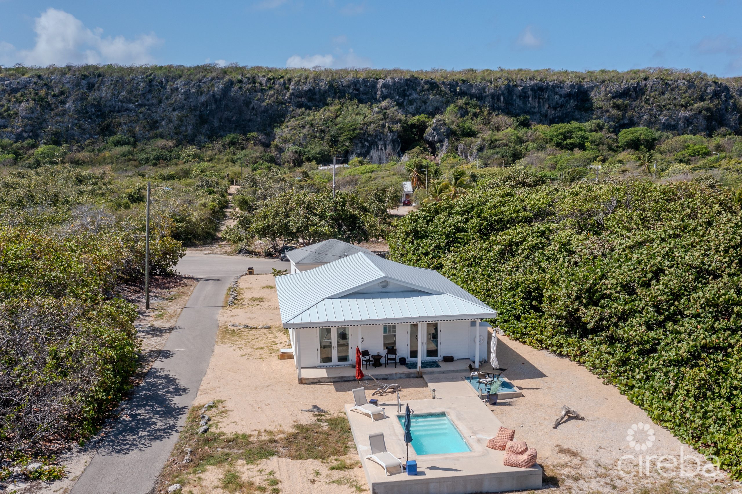 This beautiful beach home is located on the very end of the North East side of Cayman Brac. Offering peace and tranquility with the ocean as your front view and the stunning Bluff in your back yard. This property rises approximately 11ft above sea level. The main house offers two bedrooms and one bathroom with a very spacious open plan living room and kitchen, central air conditioner and is 1,208 sq ft. Beautifully furnished with views of your private pool, sundeck and ocean. The studio apartment is next to the garage and offers 351 sq ft of 1 bedroom and 1 bathroom with mini split air conditioner. This home has much to offer whether you want a private home or vacation rental property. Property also has 2 cisterns totaling approximate 7000 gallons that can be used for irrigation.