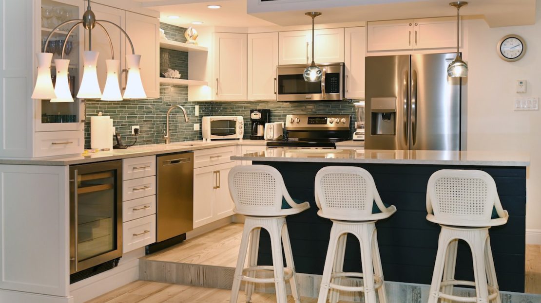 Turnkey & Fully Equipped: Two bedrooms, both with en‑suite baths, a fully stocked kitchen, in‑unit laundry, and two owners’ closets for personal storage. New designer kitchen with GE Profile appliances and a wine fridge. Storm shutters. Sold furnished and ready to enjoy or rent immediately.