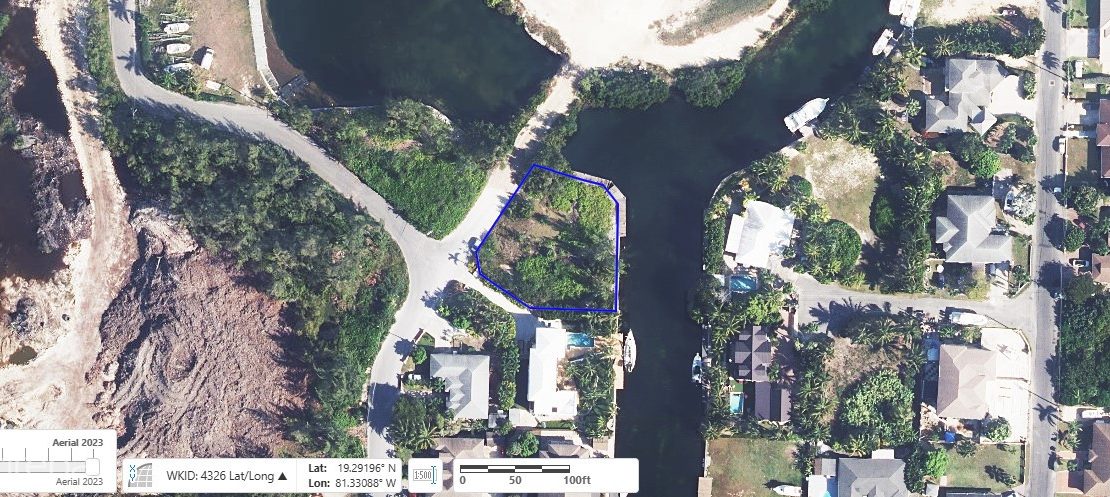 Double Canal Frontage Omega Bay Lot at the end of Bay Island Avenue, situated opposite the junction with Roxborough Street.