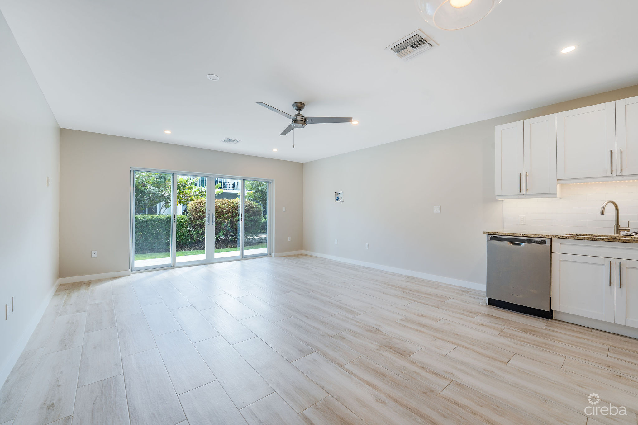 One bedroom, one and a half bathroom centrally located condo five minutes drive to George Town/Cricket Square/Grand Harbour. This unfurnished competitively priced unit is in immaculate condition with a full complement of like new appliances. Strategically placed on the ground floor in the middle of both pools and steps from the fully equipped on-site gymnasium. This unit would be perfect for a first time buyer and would benefit from Caymanian first time buyer stamp duty relief. A rewarding investment property that rents easily and allows both short and long term rentals. Abundant parking, secure gated access and pet friendly makes this a very attractive purchase. Call for viewings anytime or day.