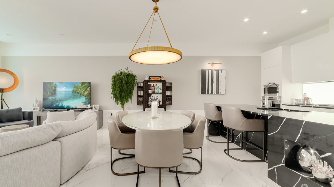 Every inch of the property exudes elegance, from the sleek lines of its Art Deco architecture to the thoughtfully curated décor that welcomes you with a blend of glamour and tranquility. Sunlight streams through expansive windows, illuminating open-concept living spaces that flow seamlessly to the ocean-facing terrace – ideal for relaxing with a glass of wine at sunset.