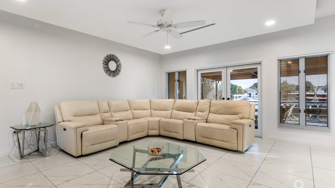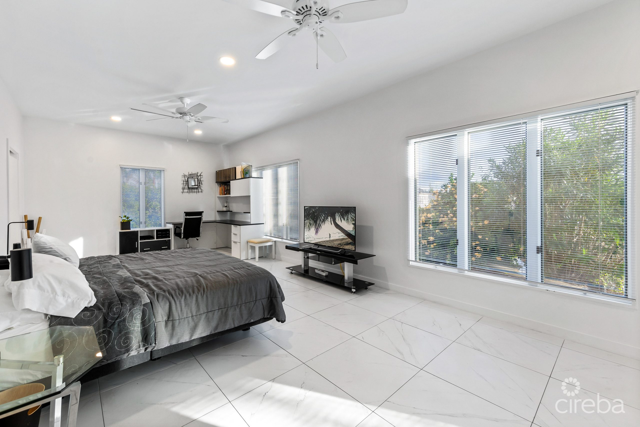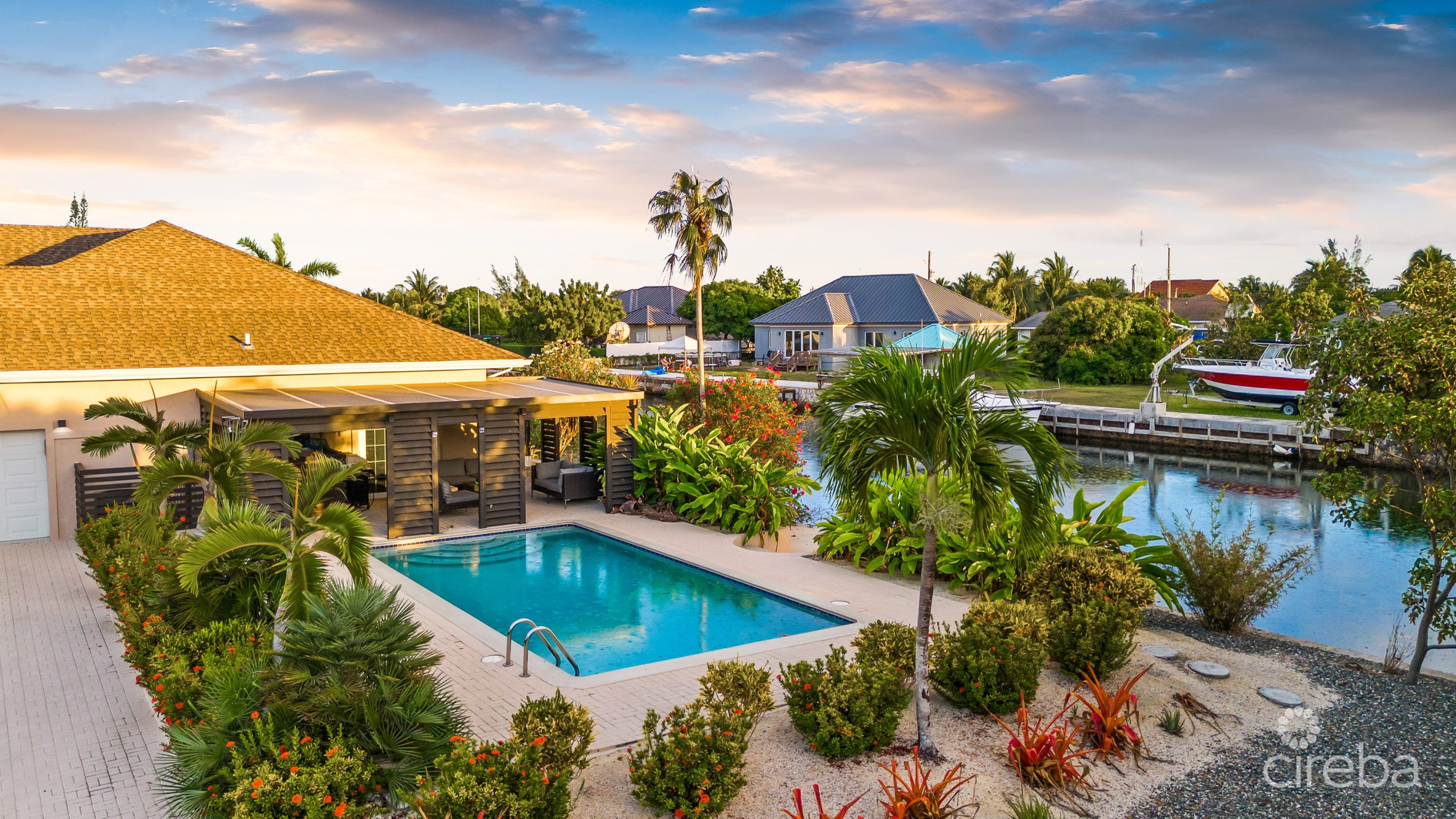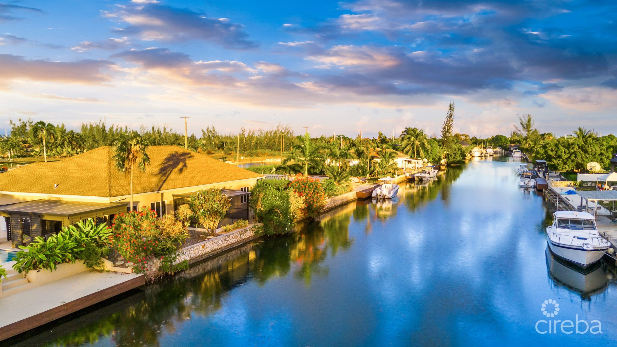 Inside, the spacious layout boasts modern finishes and an insulated attic that offers versatile potential — whether as a playroom for the kids, a quiet home office, or an additional lounge space. The home also includes a garage and 250ft water frontage with a 40ft concrete boat dock providing easy access to the canal which leads directly to the North Sound.