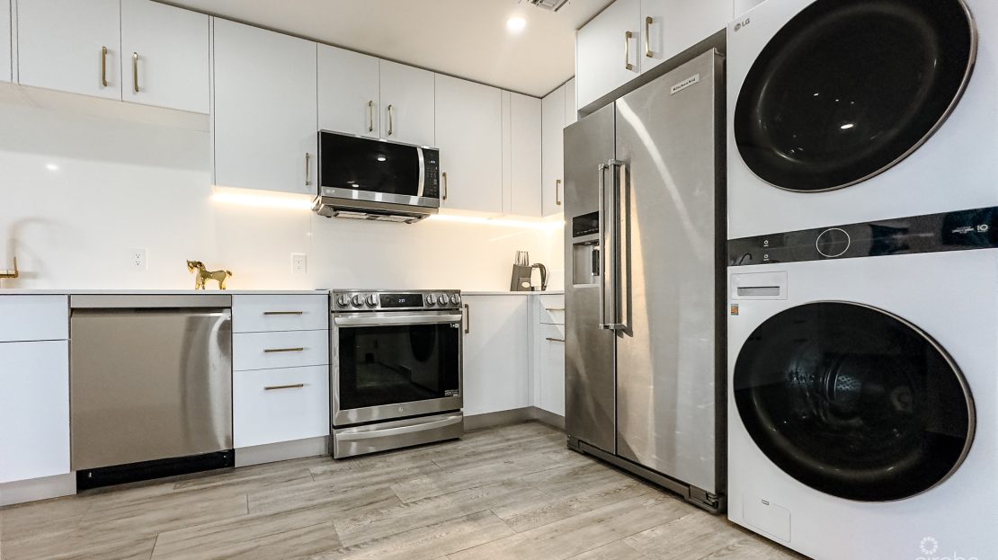 Located in the boutique Grand Caymanian Hotel, this penthouse seamlessly blends the comforts of a private residence with the conveniences of a world-class resort. Enjoy two oversized bedrooms, both with chic contemporary ensuite bathrooms. Unwind in an open-plan, light-filled living space enhanced by LED recessed lighting, a modern white kitchen with gold accents, crisp white quartz waterfall countertops, and stainless-steel appliances.
