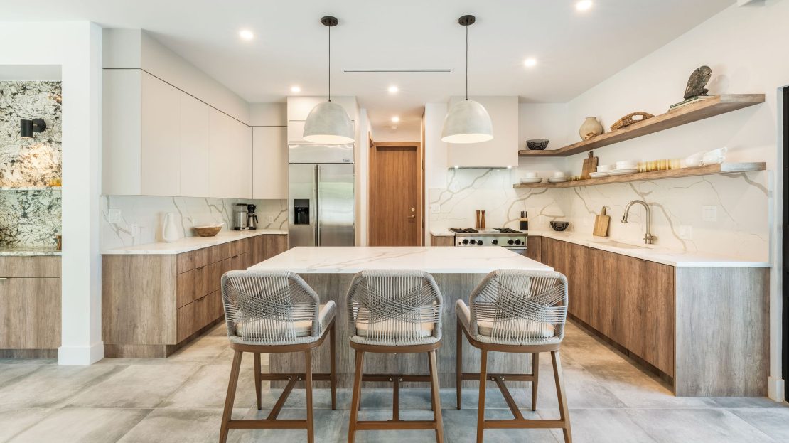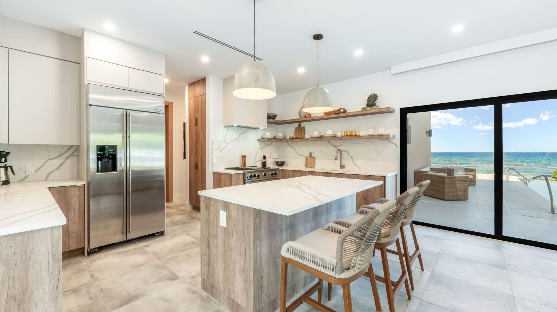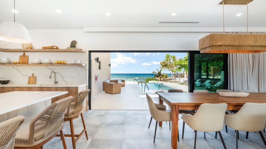 • Two 16-ft, 4-panel sliding panoramic doors in the living and dining areas, offering unobstructed ocean views and an effortless connection to the outdoors.
