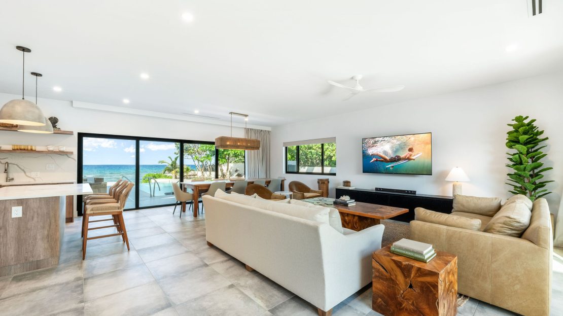 Welcome to Halcyon Point , an extraordinary 5-bedroom, 5.5-bathroom beachfront estate, meticulously designed for luxury, comfort, and resilience. Situated on a sprawling 1-acre lot with 200 ft x 40 ft of pristine sandy beach, this fully furnished modern home offers breathtaking ocean views and seamless indoor-outdoor living.