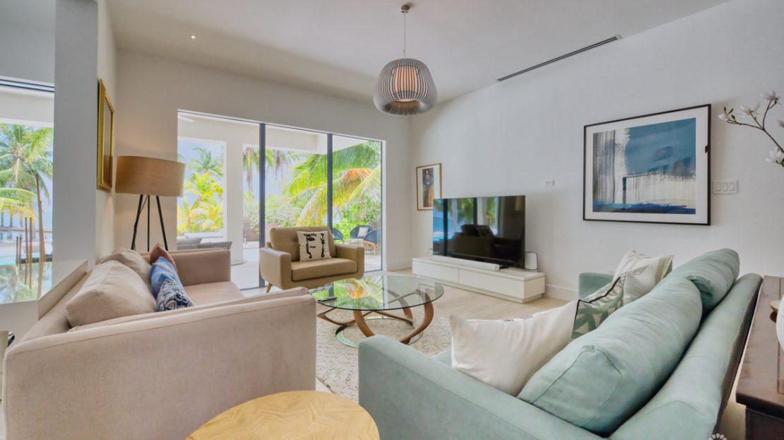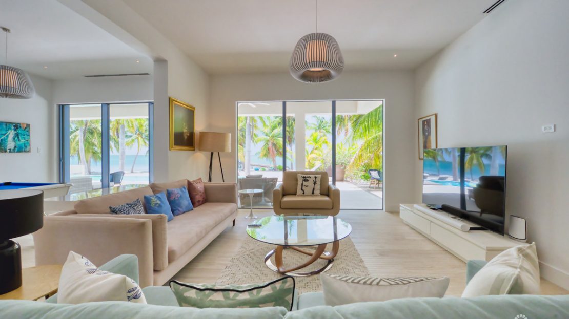 The ultra-modern interior, seamlessly blending open-plan living and kitchen areas with floor-to-ceiling glass, provides an immersive experience of the endless ocean views. Awaken in each bedroom to the gentle caress of turquoise waves, embracing complete serenity and privacy.