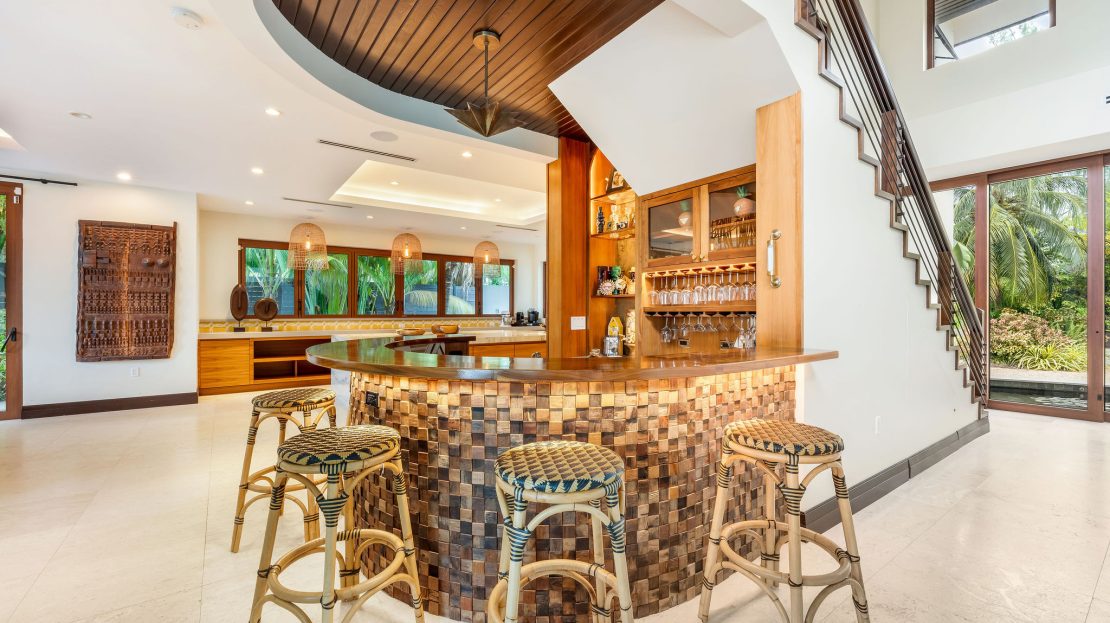 Designed by visionary architect John Doak, this Balinese-inspired oceanfront estate captures the very essence of Cayman’s tropical and eclectic spirit, a symphony of natural textures, exotic craftsmanship, and pure serenity. From the moment you arrive, every sense is awakened. The gentle scent of salt air and timber. The shimmer of koi ponds. The rustle of palms framing an infinite horizon.