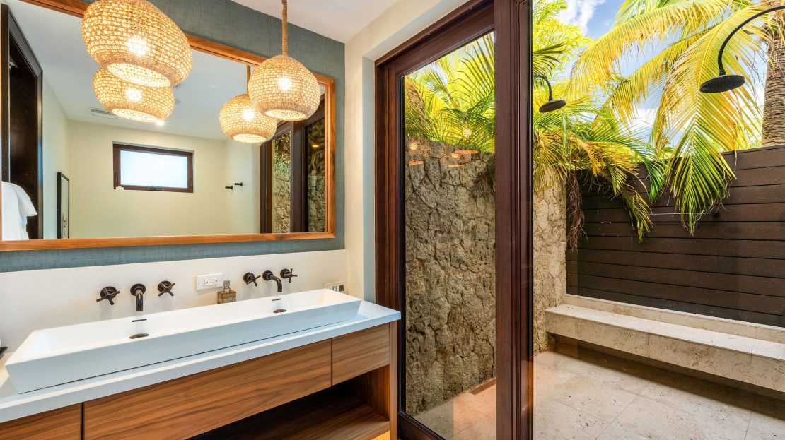 Within, the flow of space and light evokes the calm rhythm of island life, refined to a level of luxury reserved for the world’s most discerning collectors. Poised on over half an acre of prime beachfront in Cayman Kai, Kempa Kai offers 8,512 square feet and seven bedrooms of private resort living. The main villa unfolds across multiple master suites, each a private sanctuary adorned with organic textures and spa-style baths. The guest bungalow, discreetly nestled within tropical gardens, provides two secluded suites with outdoor showers and Zen courtyards, ideal for hosting in effortless privacy.