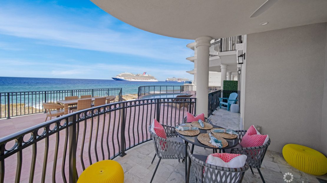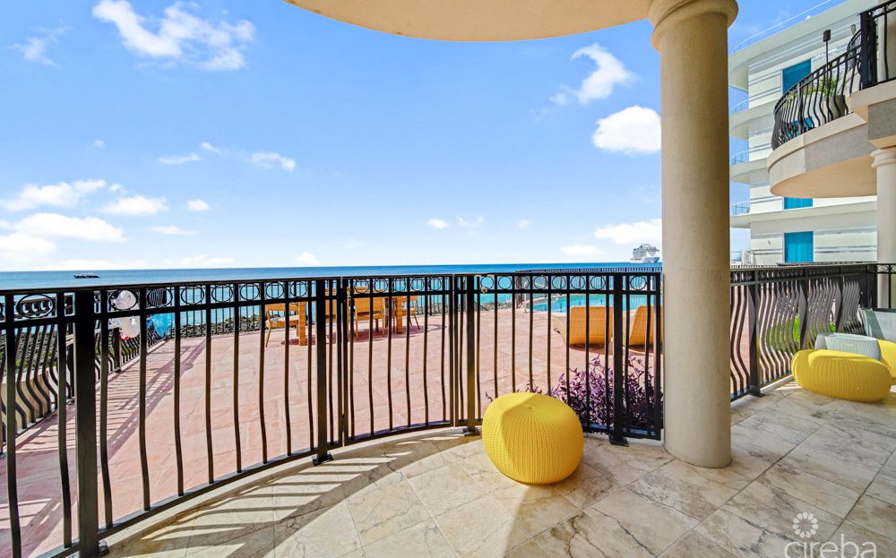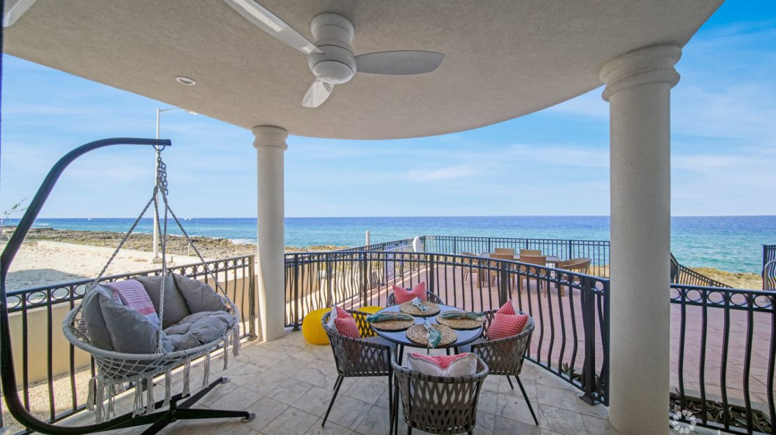 Recently renovated, this unit showcases a Caribbean Cottage Chic interior, featuring high-end finishes, brand-new stainless steel appliances, and a fully furnished layout, delivering a turnkey living experience. The open floor plan flows effortlessly between the main living areas and the private corner patio is perfect for outdoor dining, lounging, and enjoying panoramic seaside views. The patio offers direct access to the oceanfront sun lounge area, complete with a seaside dipping pool, soak tub, and sea-ladder access to crystal-clear Caribbean waters, ideal for daily swims, world-class snorkeling, and scuba.