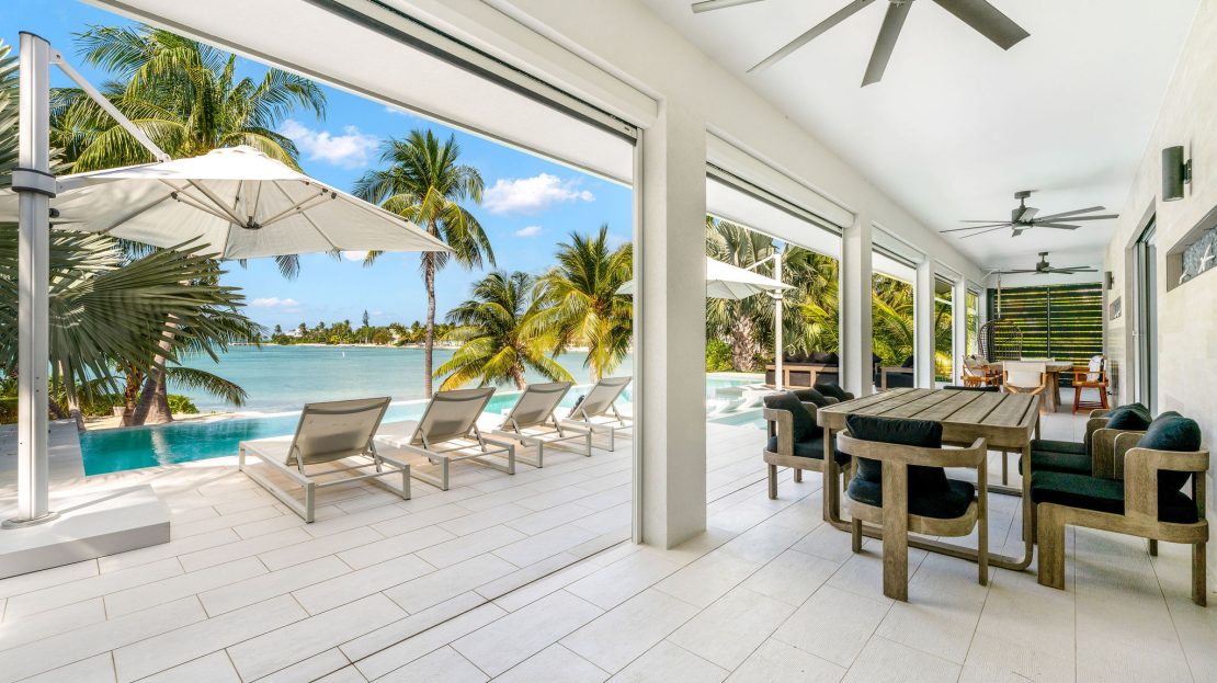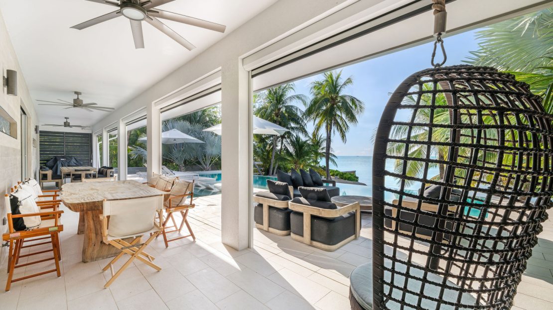 This property boasts state-of-the-art indoor and outdoor sound systems, multiple TVs, and ample seating areas designed for gatherings both inside and out. Built with hurricane-rated construction, including a durable standing seam roof, it offers security and peace of mind. Newly installed wizard screens enhance the seamless transition between indoor and outdoor living, further elevating the home’s comfort and functionality.