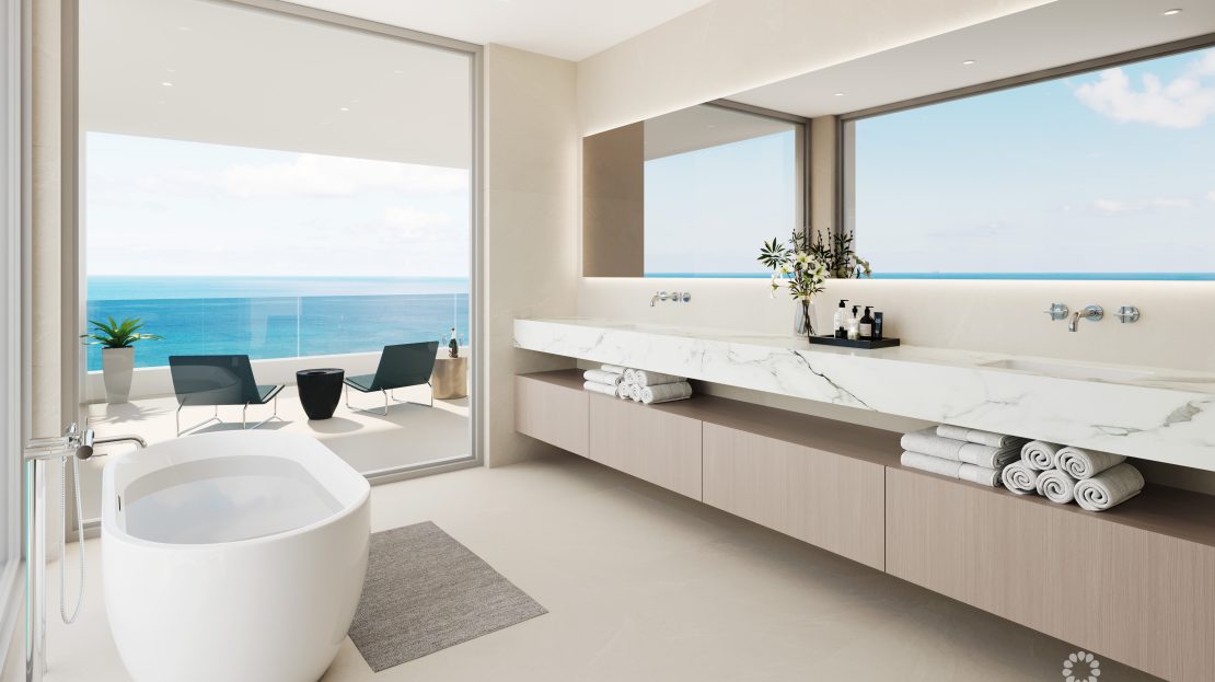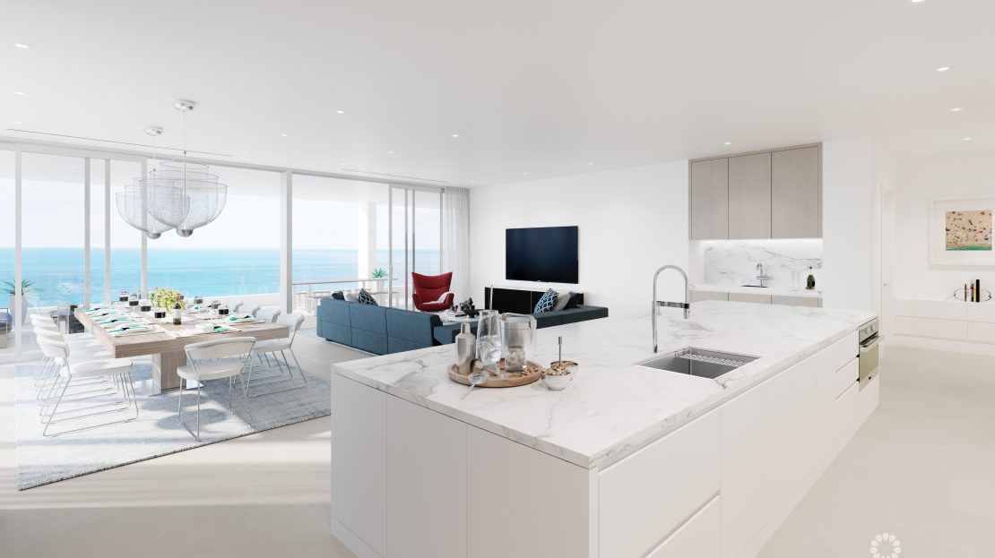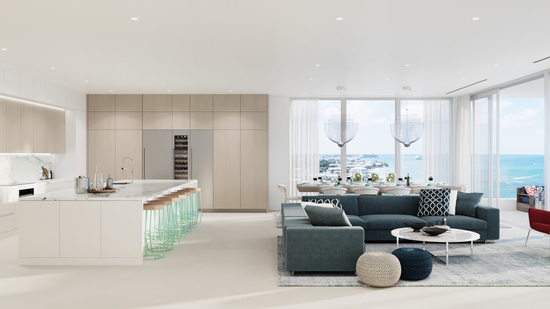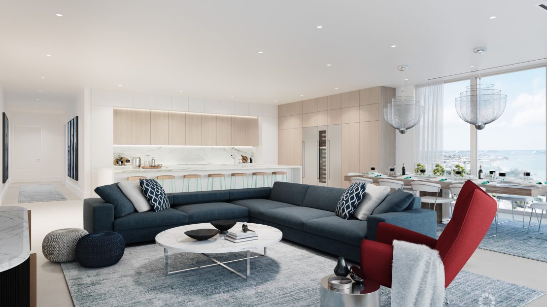 Lacovia blends lofty integrated living spaces with breath taking views of Seven Mile Beach. Expansive windows frame the seascape, while custom cabinetry provides unified design and discrete storage from the lounge areas to the bedrooms and beyond. Gourmet chef’s kitchens with Miele and Sub-Zero appliances allow for effortless entertaining.