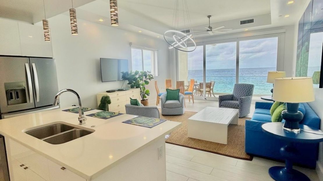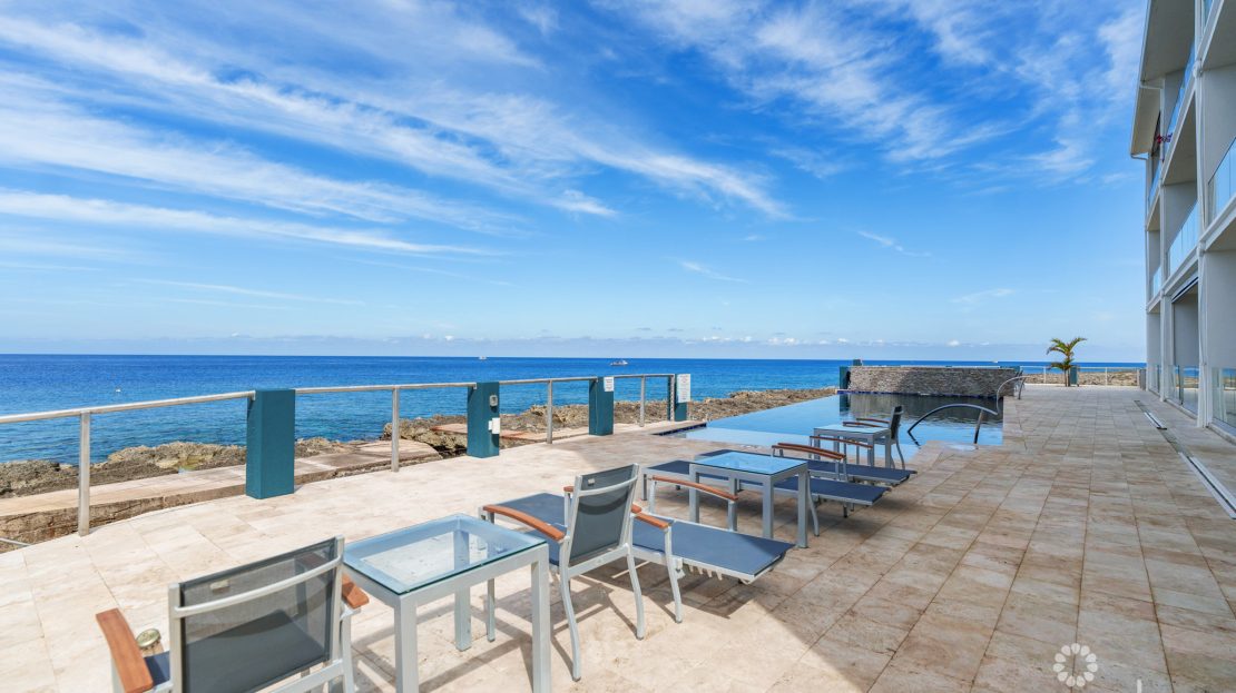 Situated in a premier oceanfront location, residents of Unit 201 are privileged with sweeping views of the turquoise waters and direct access to the pool deck, merging indoor and outdoor living effortlessly. Picture yourself waking up to the soothing sound of the ocean and ending your day with magnificent sunset vistas from your private balcony.