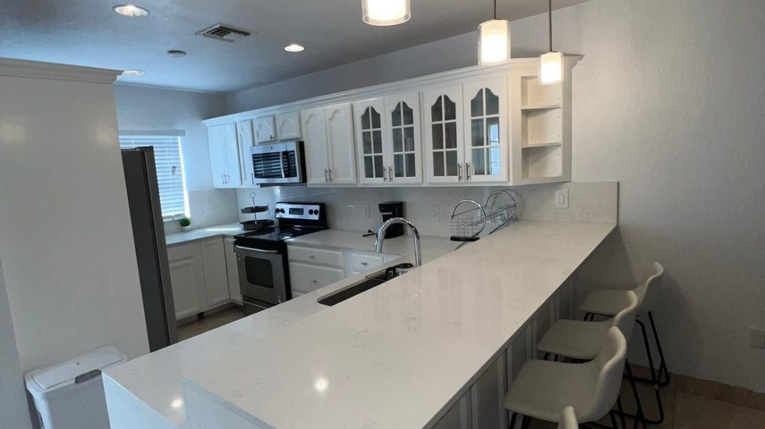 This spacious 1,352 sq ft. home features a beautifully updated kitchen with fresh white cabinetry, quartz countertops, modern lightening, and a bright open-concept living and dining area perfect for entertaining. The entire home feels clean, airy, and contemporary with neutral finishes that suit any decor style,