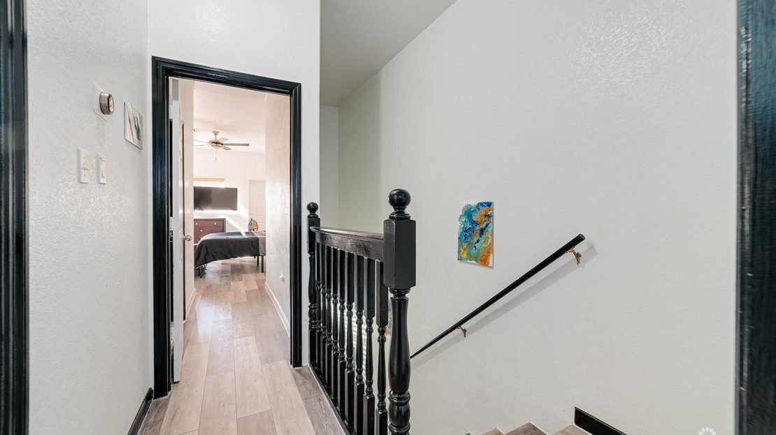 The second floor also includes upgraded flooring, extending up the staircase for a clean, modern look.