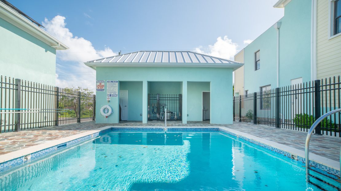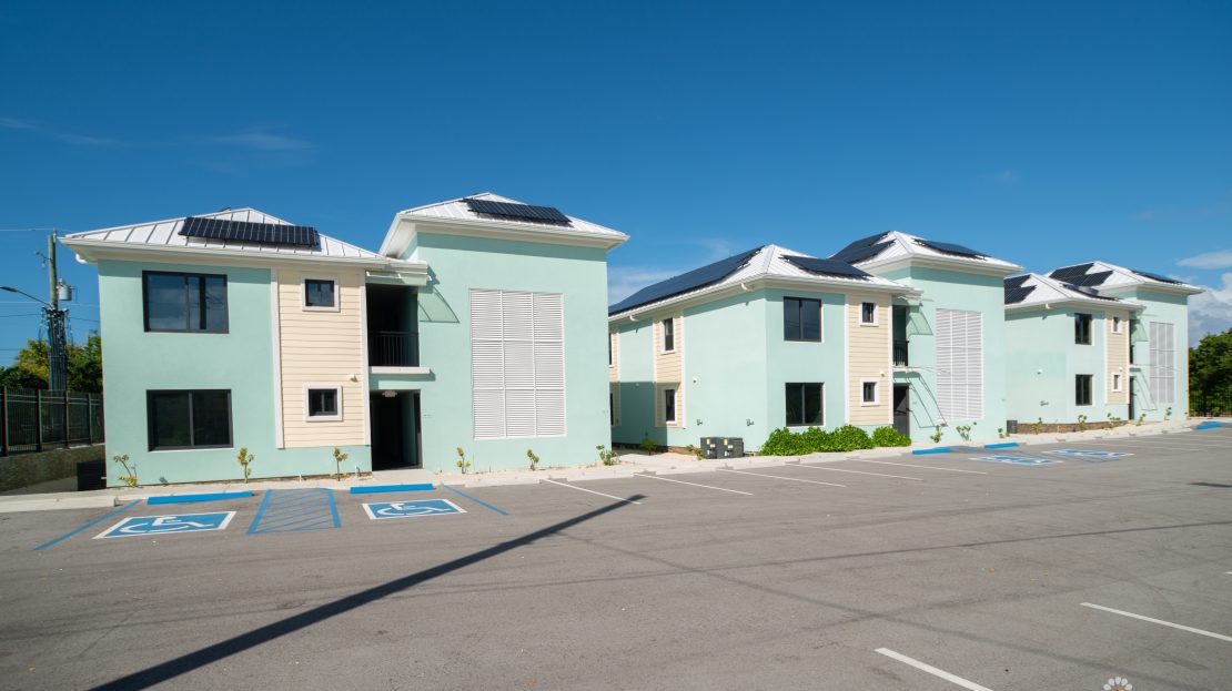 Each unit is constructed with durable concrete block and foam insulation, while bathroom walls are made from sheetrock. Built to hurricane standards and elevated 18 feet above the high water mark, the complex offers both security and peace of mind. Energy-efficient features such as solar panels and low-E windows help keep utility costs low.