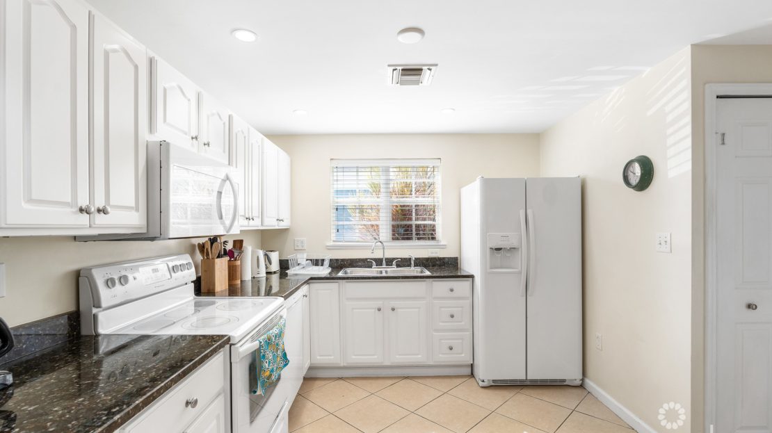 On the ground floor, the open layout connects the kitchen, dining, and living areas seamlessly. The kitchen provides plenty of storage, while the living room is enhanced with custom built-ins and natural light. A screened patio extends the living space outdoors, overlooking lush greenery and providing a safe place for children to play or for evening gatherings with friends.