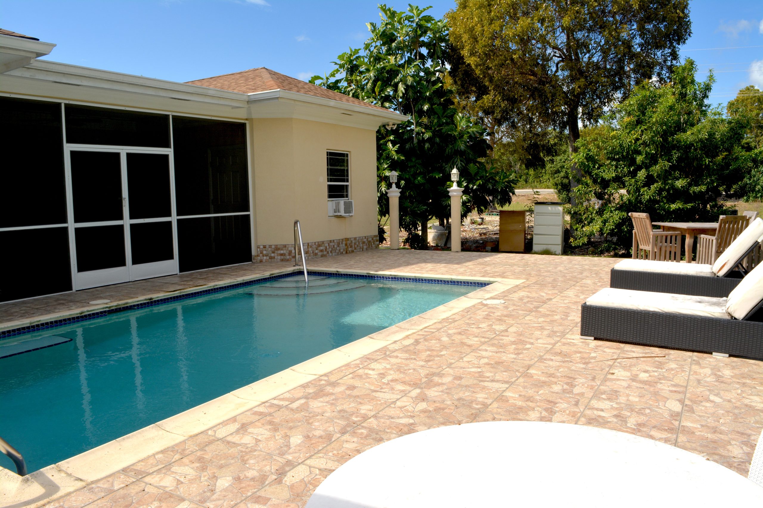 Additional Features: A separate structure adjacent to the pool offers ample storage and potential for future expansion.