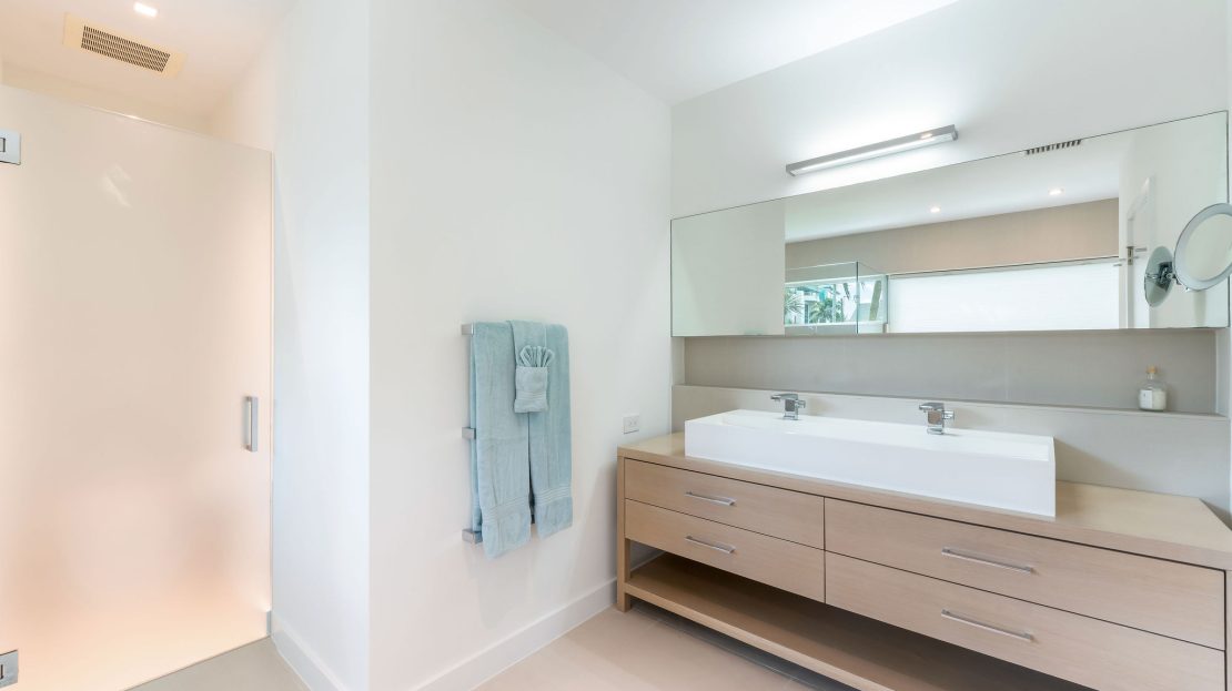 The primary suite is a true retreat, featuring direct terrace access, a spa-inspired bathroom with captivating sea views, and a generous walk-in closet. Two additional en suite bedrooms, each with private outdoor space, complete the home and further elevate the sense of flow between indoors and out.