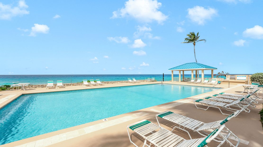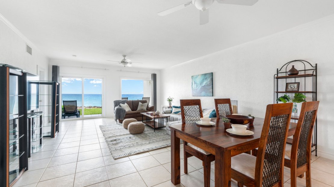 The generously sized kitchen is perfect for entertaining, while the open concept layout allows for seamless indoor/outdoor living. Step onto your private oceanfront patio, feel the refreshing sea breeze, unwind by the oceanfront pool or take advantage of the communal BBQ area.