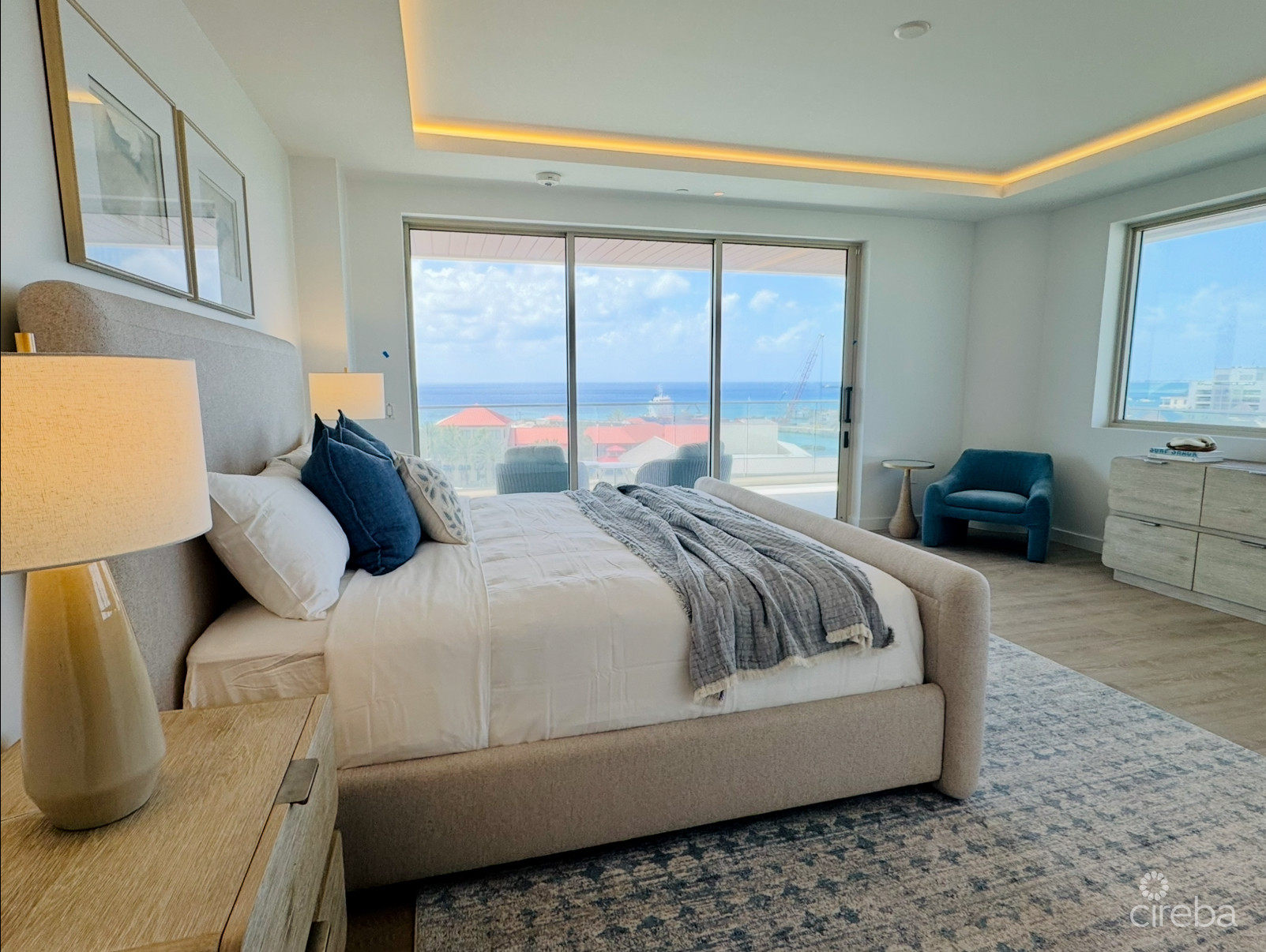 The interiors have been fully furnished and styled by Anna Hislop, with a curated package valued at CI$131,000, including bespoke window treatments. A dedicated VIP parking space is also available, further enhancing convenience and exclusivity.