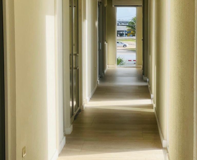 A turn key unit with 800 square feet of floor space and drop ceilings with a private bathroom and plentiful natural light, complete with hurricane resistant windows and doors and a serviced elevator and security system.